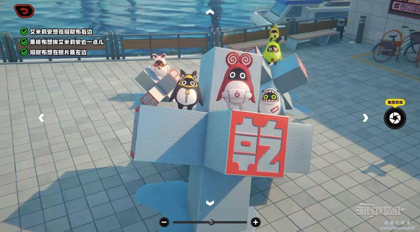 絕區零 (Zenless Zone Zero) 孩子的交友監督第二天訓練答案及邦布位置 16 7 月 2024-07-16 廣告 作者:瑞破受氣包 來源:遊民星空 第二天答案及邦布位置 第二天的空洞與第一天一樣,跟著任務指引走與邦布對話即可完成。 這裡先把第二關的埋伏訓練和慶功合影的答案放在開頭,任務期間需要尋找的招財布,如果找不到的話可以查看下文。 埋伏訓練 正確答案:16只 慶功合影 合影角度如下(預設視角往左上方移動即可)。 孩子的交友監督·其二邦布位置 傳送到光映廣場咖啡店,從旁邊的樓梯上露台,邦布就在露台上的欄杆旁邊。