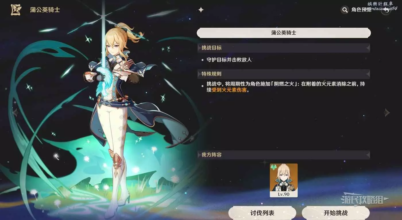 解鎖關卡後,需要完成挑戰。在挑戰期間,琴會持續受到一定比例的火元素傷害,需要保證中間的箱子不被打壞的同時,擊敗15名敵人。