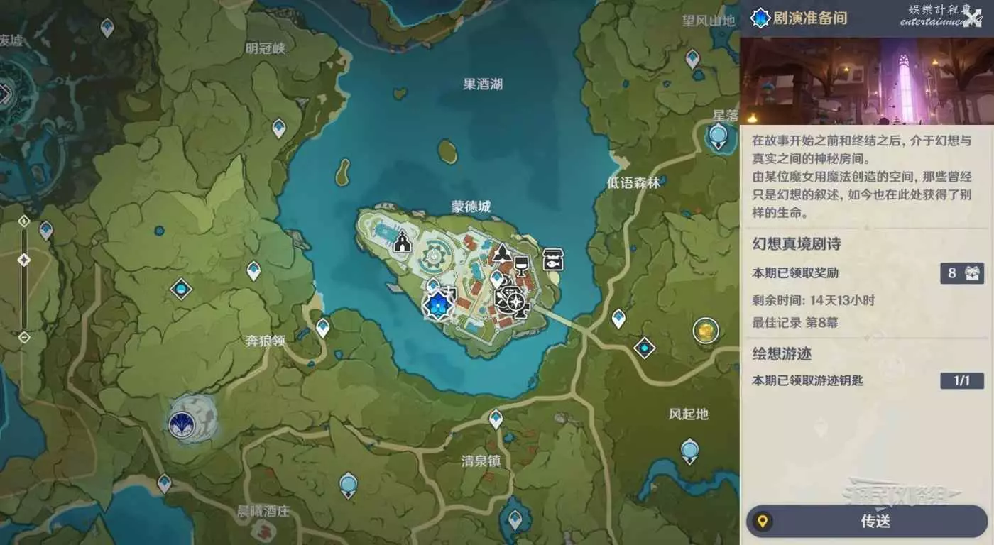 傳送到蒙德新深淵幻想真境劇詩的【劇演準備間】。