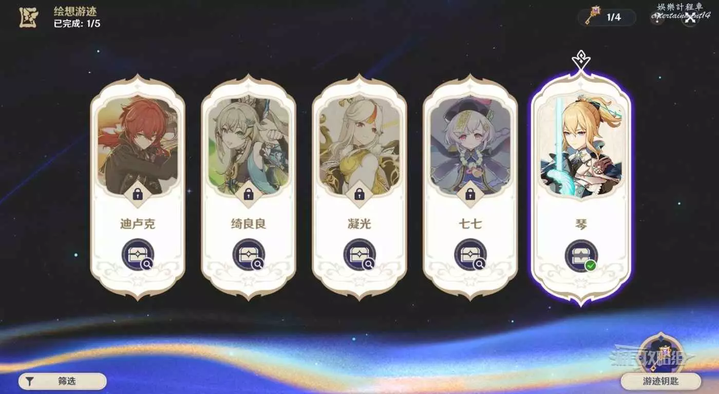 琴的游跡關卡解鎖條件:遊跡鑰匙×2、琴角色等級達到90級、琴好感度達到8級。