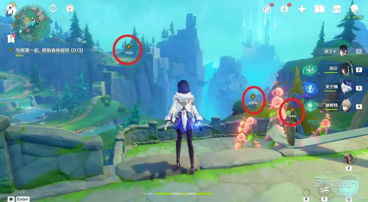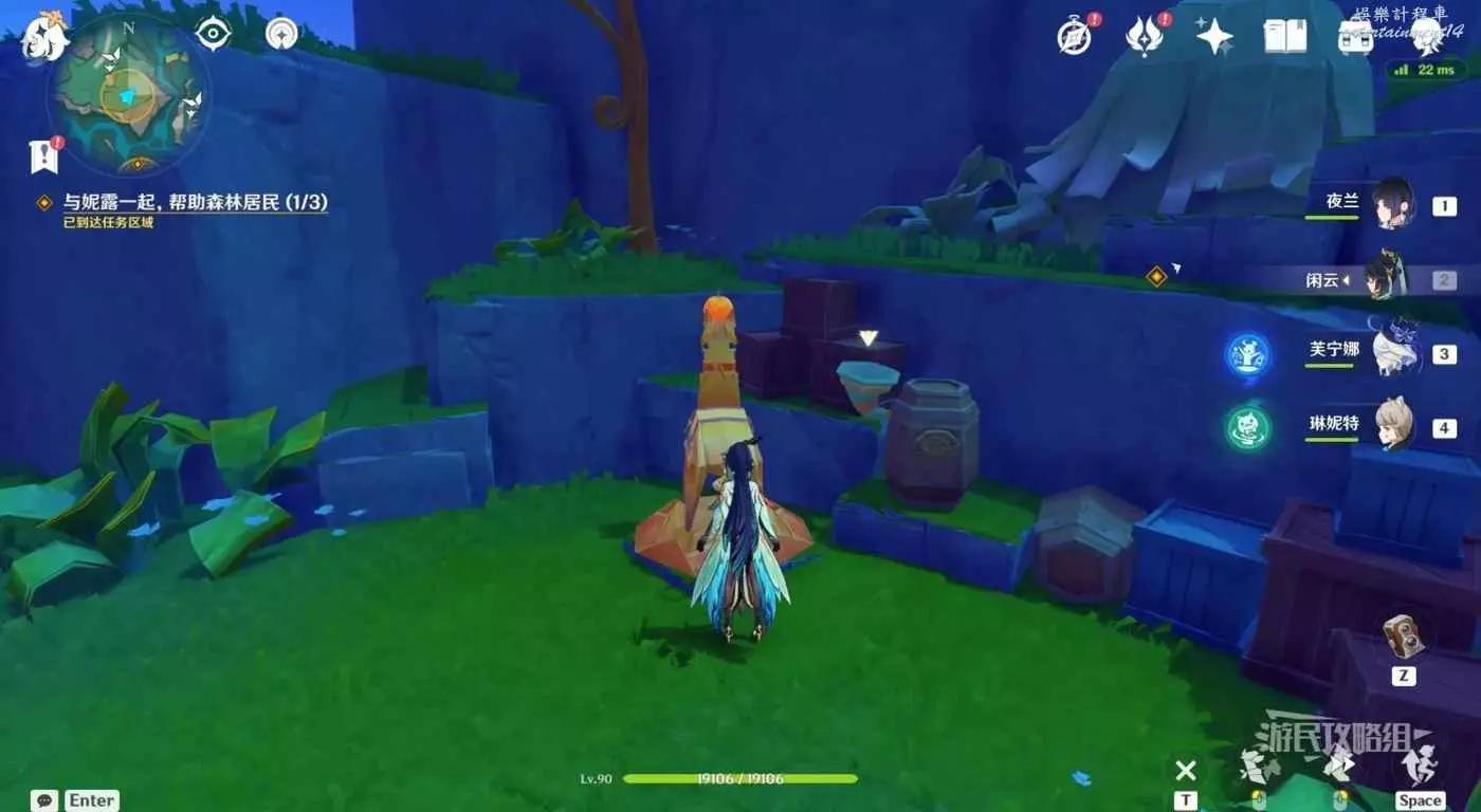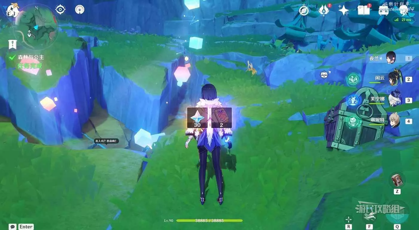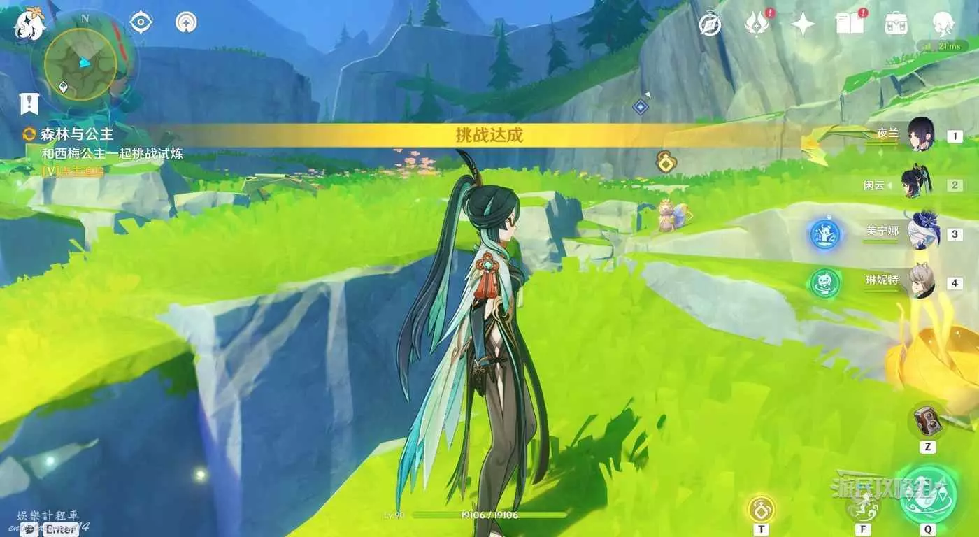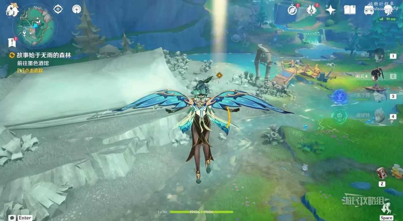 靠近目標位置後,自動觸發對話,對話完畢後,觸發任務【森林與公主】。跟隨指引前往目標位置與西梅公主對話,因為是靠近自動觸發的,注意及時打開風之翼避免摔死。