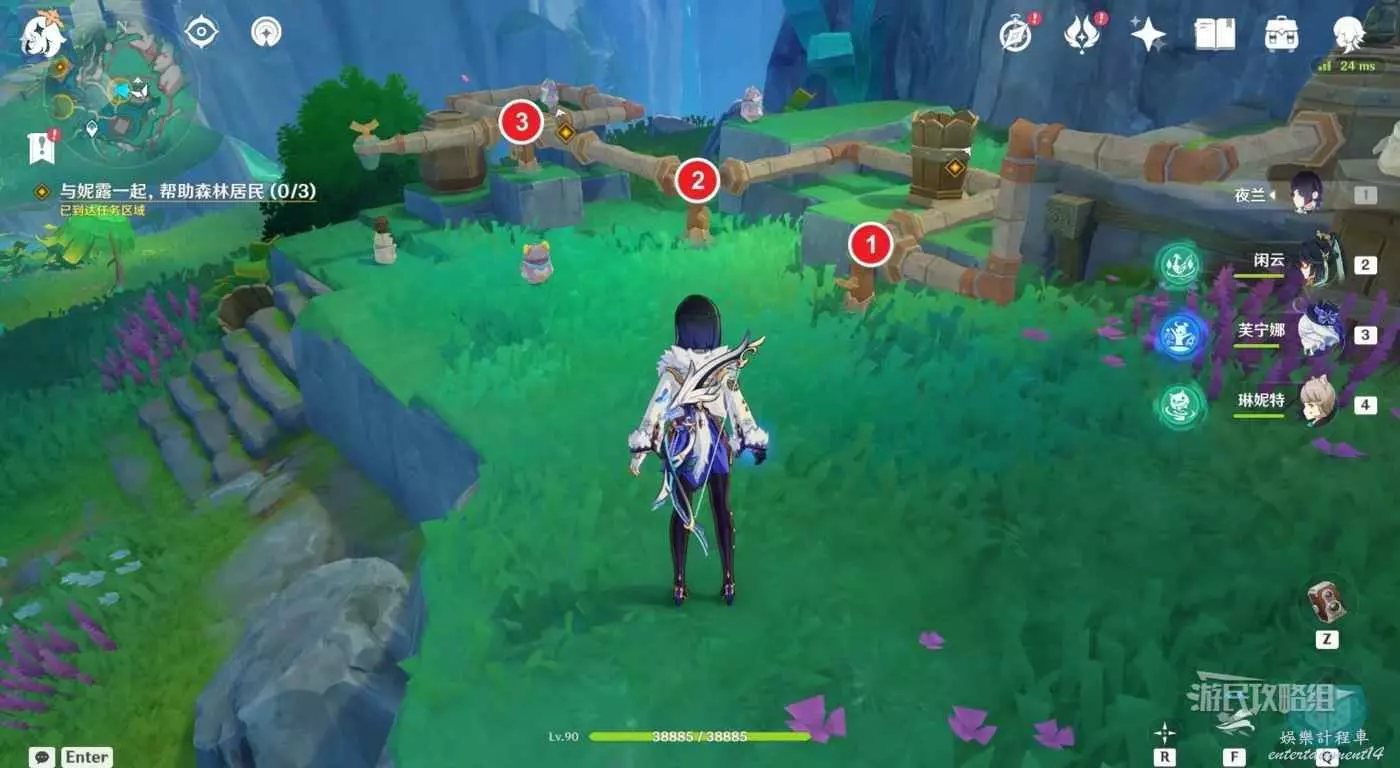 對話結束後,開啟活動介面,解鎖【北風閃塵吹流】玩法。關閉活動介面,繼續追蹤任務,與妮露一起,幫助3位森林居民。