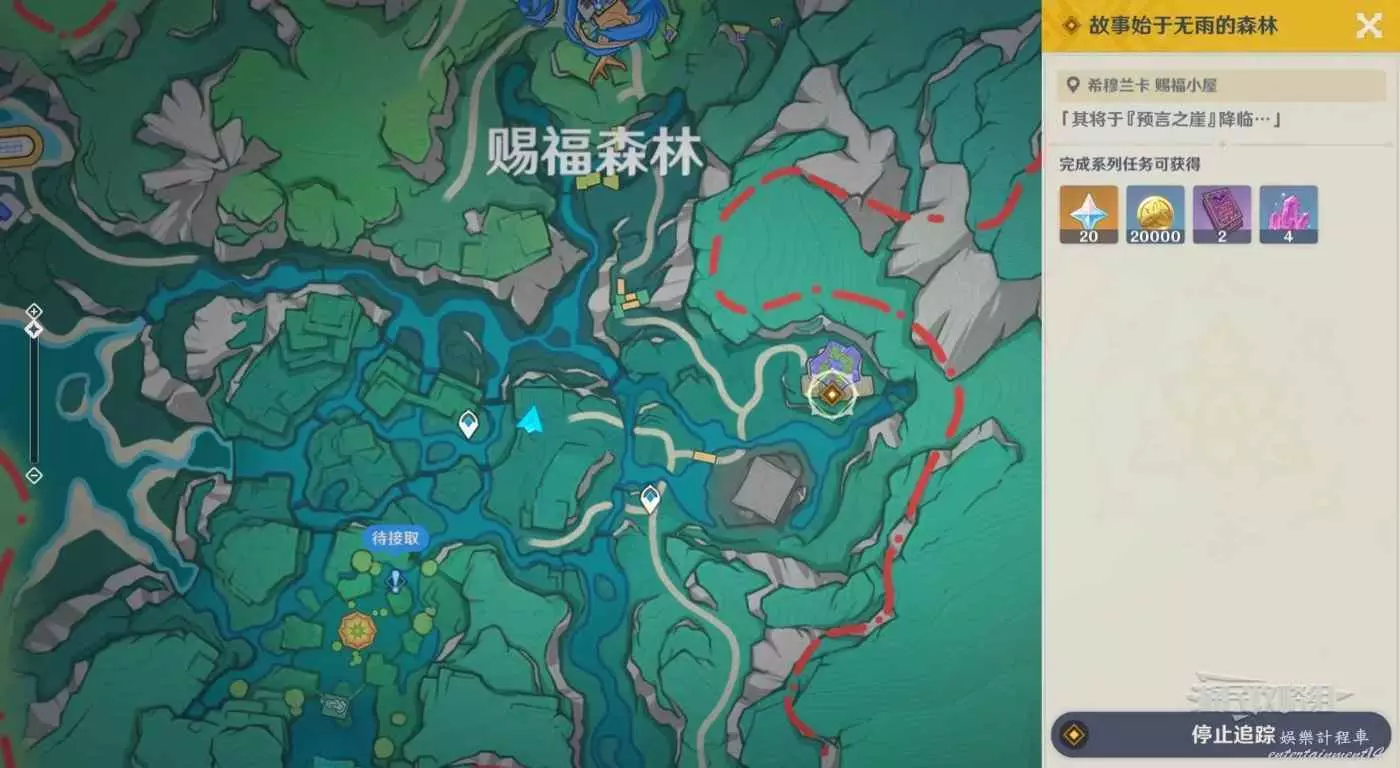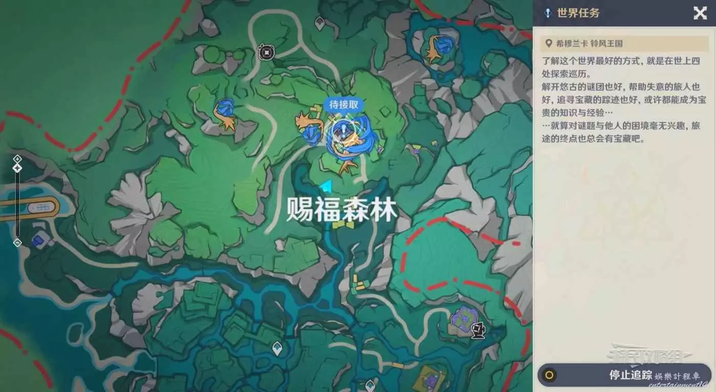 完成3個前置任務後,傳送到賜福森林上方傳送錨點,自動接取任務。
