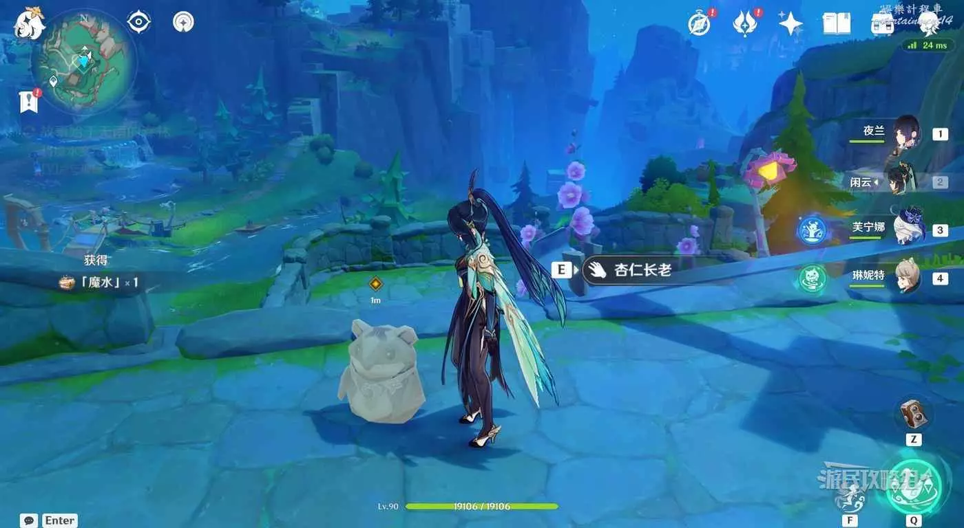 對話結束後,跟隨指引將魔水交給杏仁長老,繼續對話。