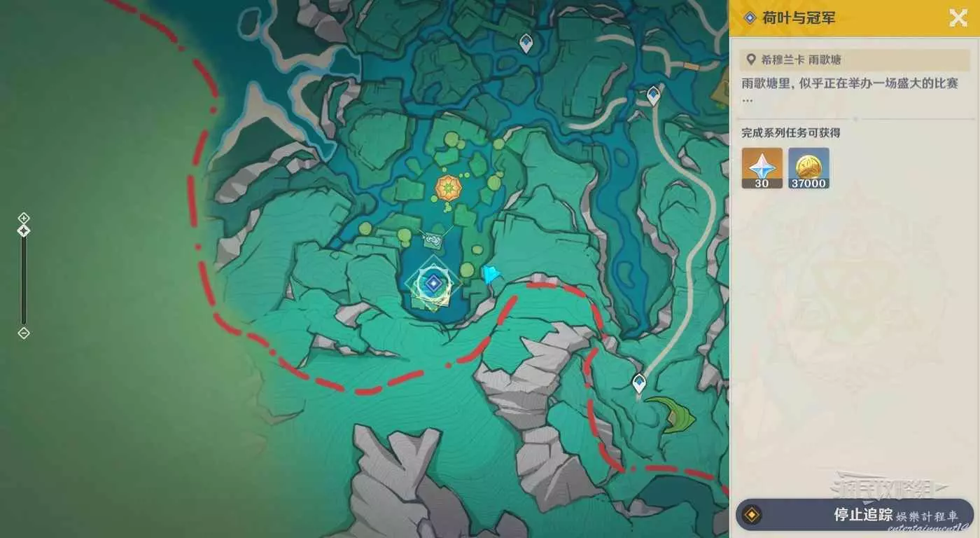 前往地圖上的任務標記位置,靠近目標位置後自動觸發劇情,劇情結束後,觸發任務【荷葉與冠軍】。