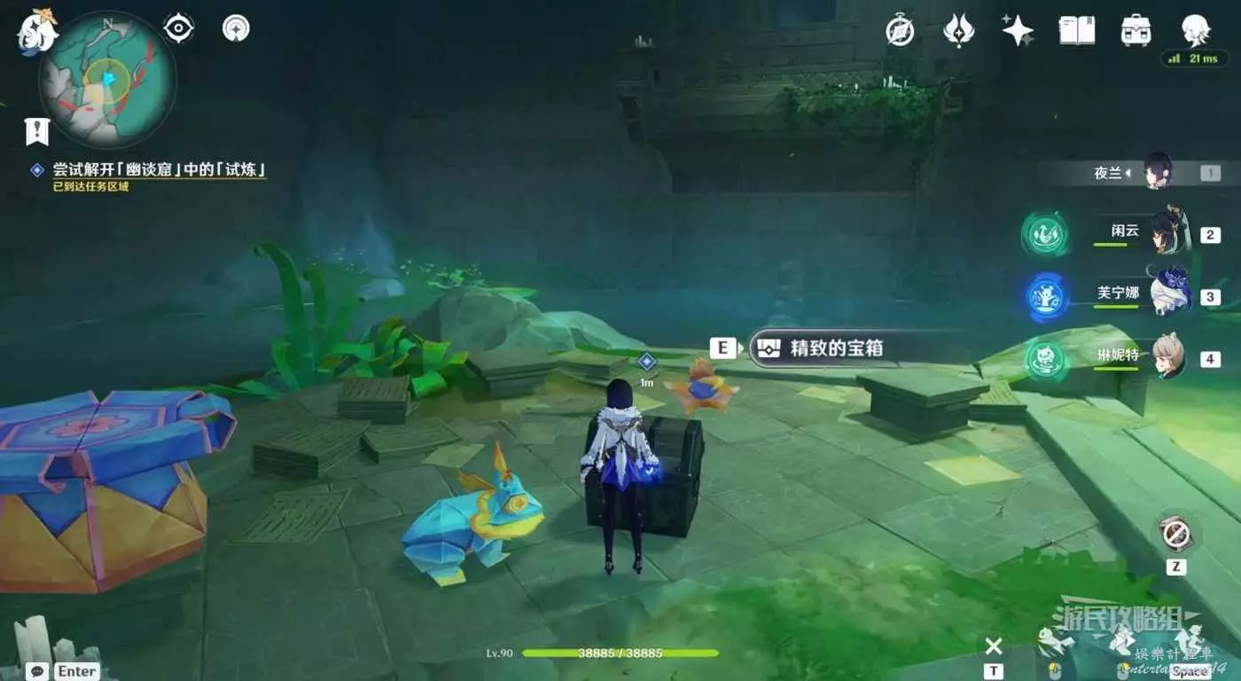 成功完成試煉後觸發對話,對話完畢後歐與精緻的寶箱互動。