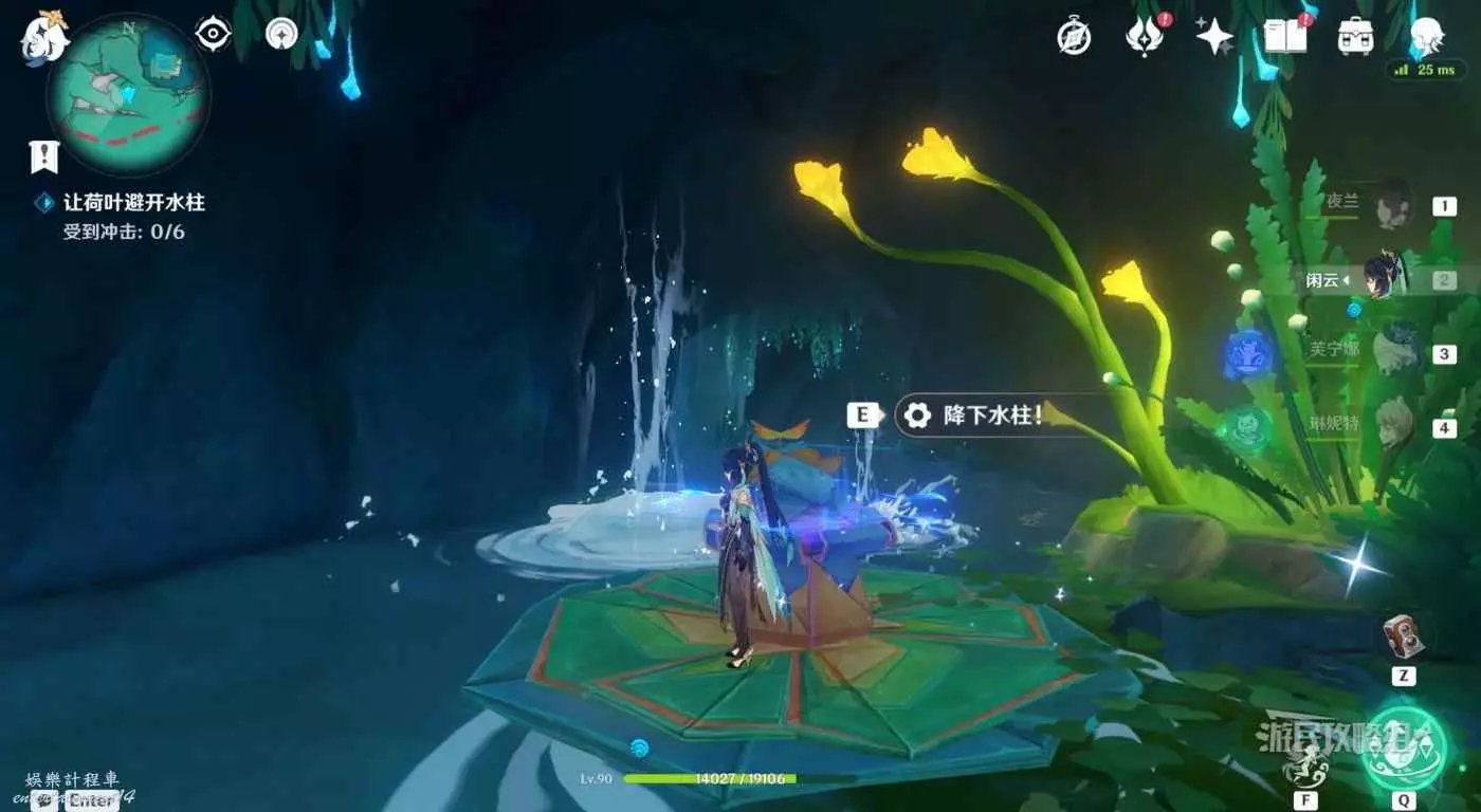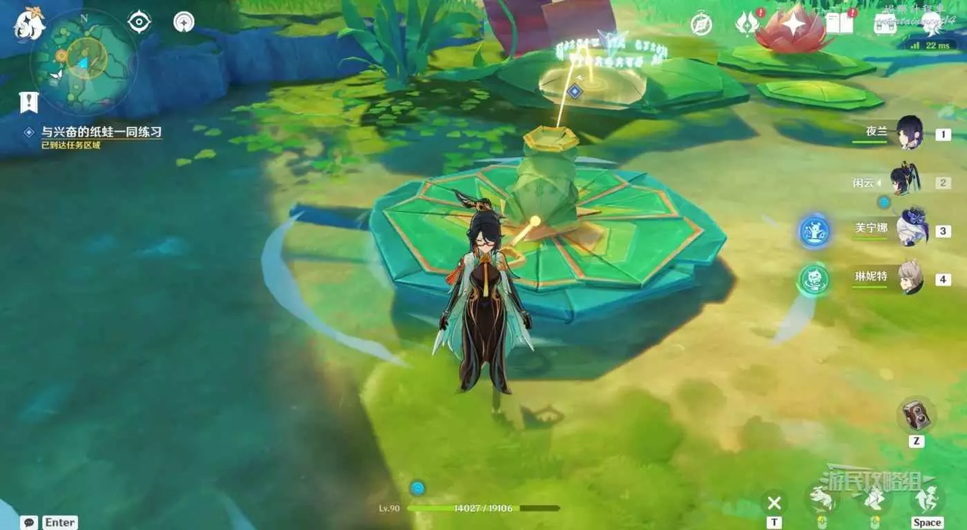 漂流開始後,在荷葉快要到達水柱面前時,點擊互動鍵降下水柱,重複多次操作直到順利通過漂流階段。觸發對話,任務完成。