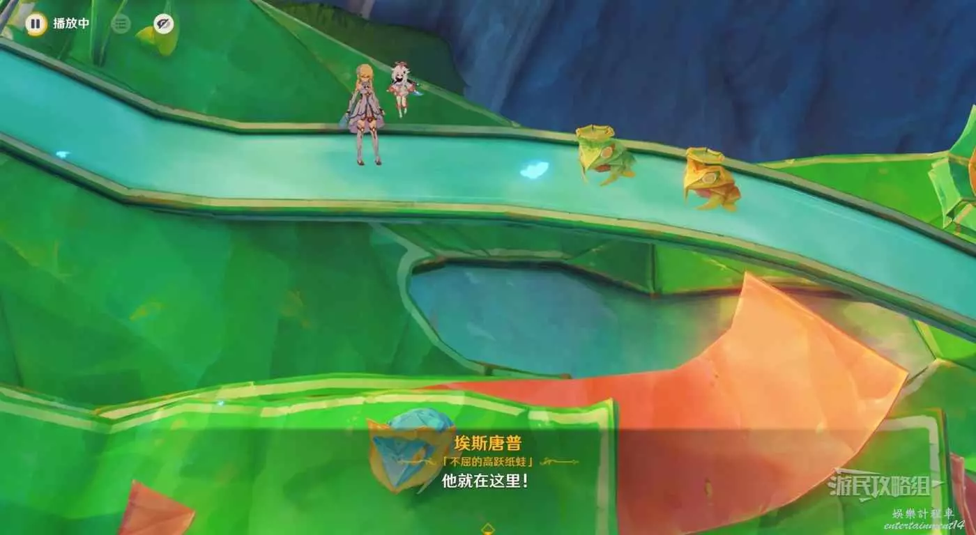 劇情結束後,分別與指引兩側的紙蛙對話。我們先前往右邊。