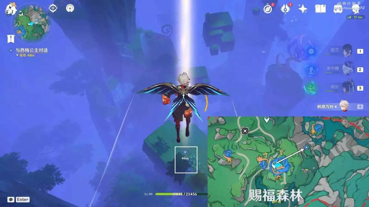傳送賜福森林北方向錨點,往地圖的北方向飛,開啟錨點