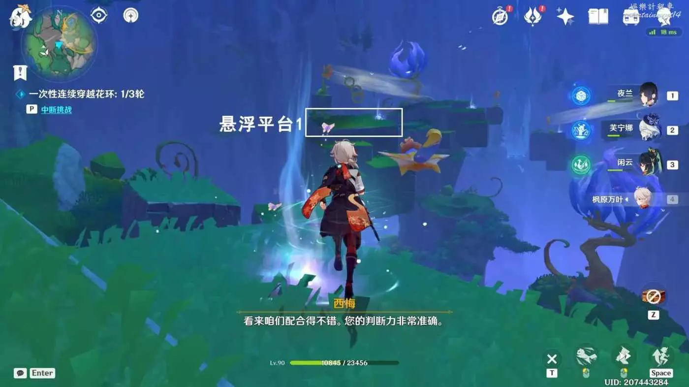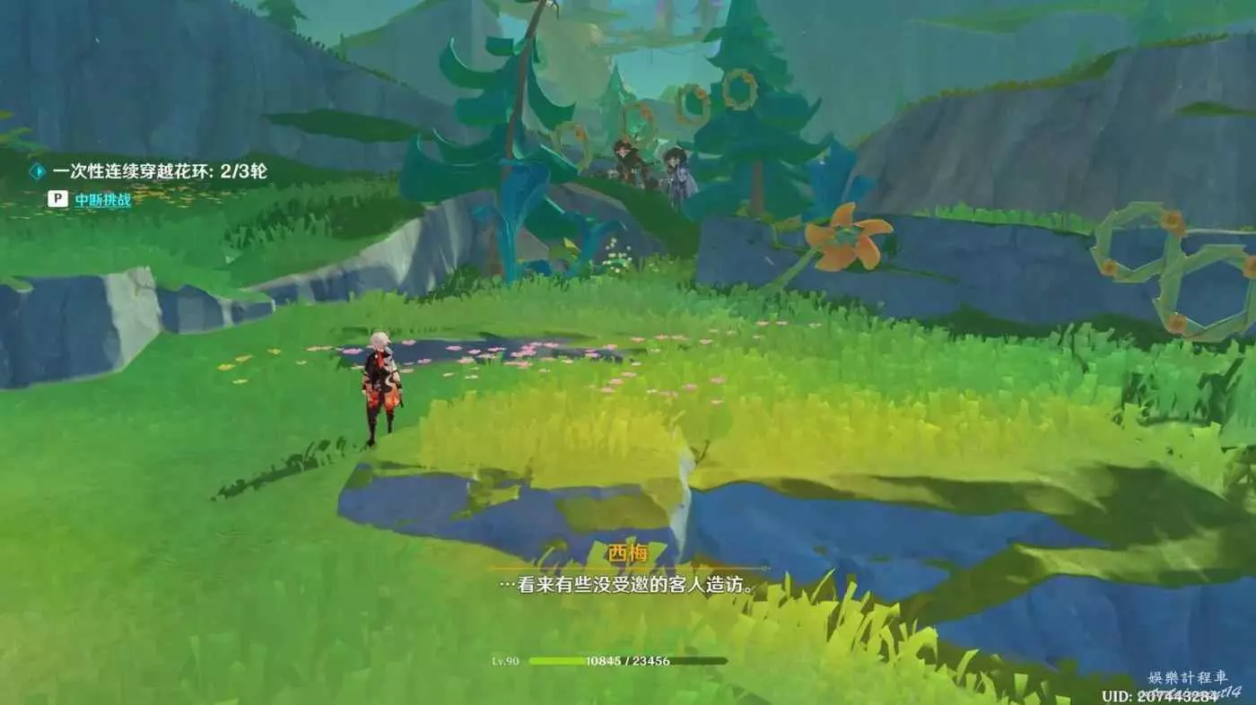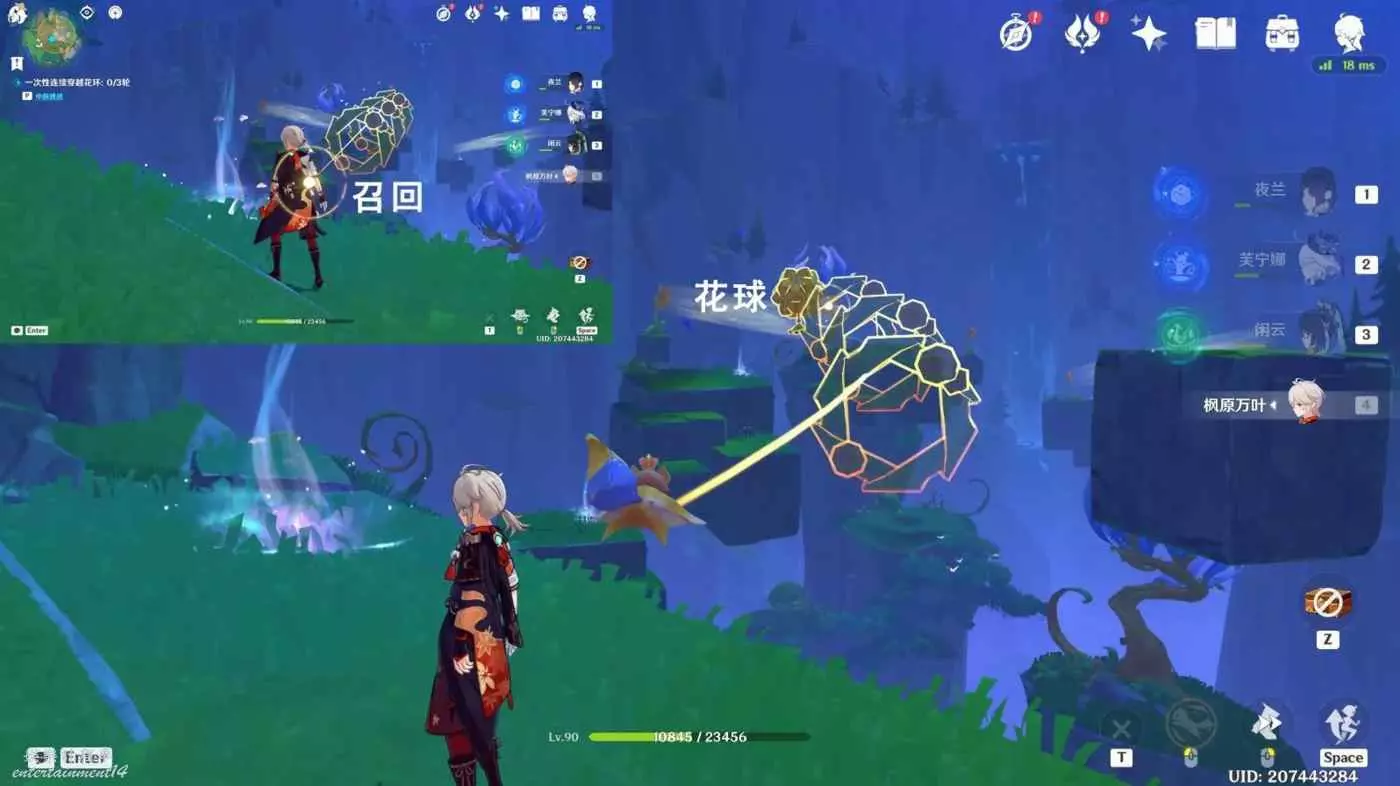 前往懸浮平台2,顯示軌跡穿過所有花環,點按攻擊召回