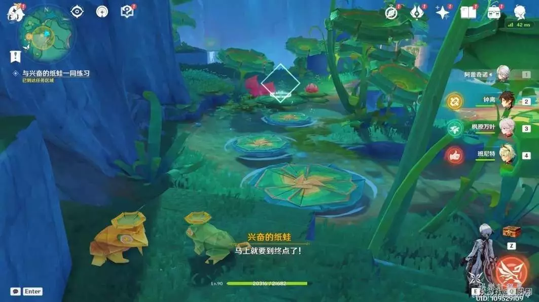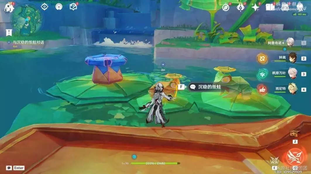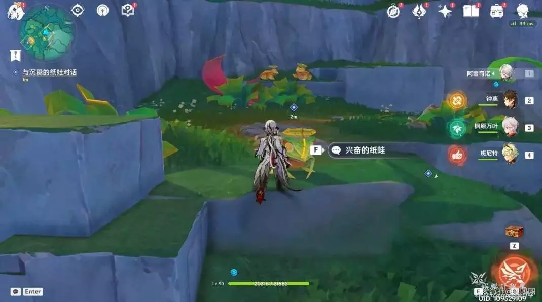 接取任務後來到左側與興奮的紙蛙對話。