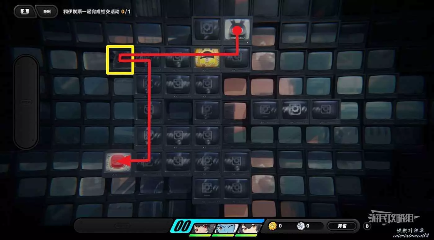 來到第三層,按照下圖路線拾取黃框裡的物資,再到達下方開啟按鈕。