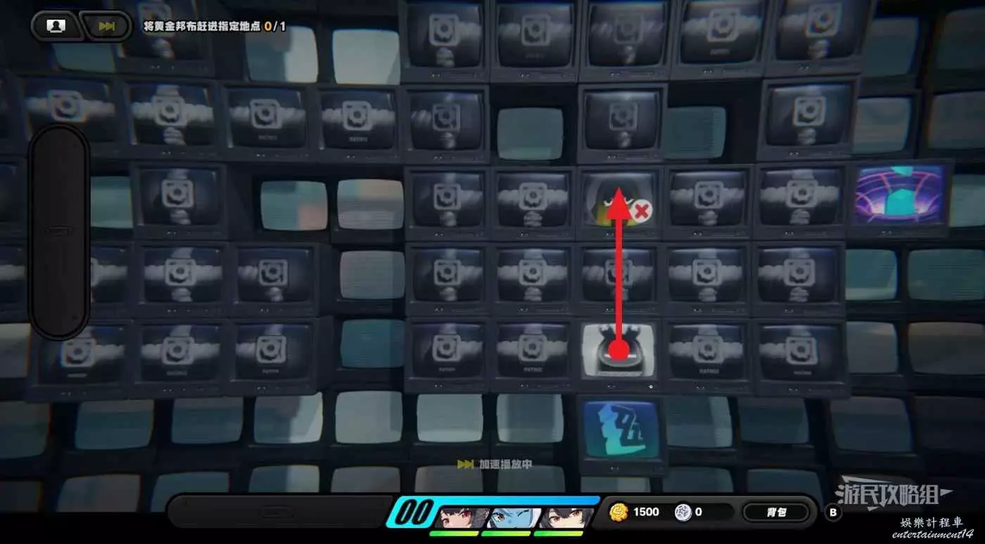 到達最後一層,這裡需要將黃金邦布驅趕到藍色出口位置。首先看到圖中有兩個右下角帶紅色×號標記的邦布,這裡路過的時候可以順手幫助他們。