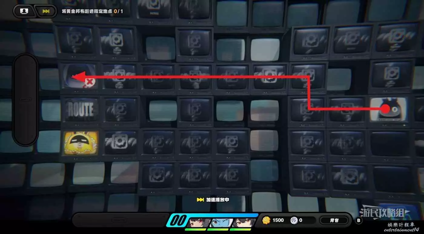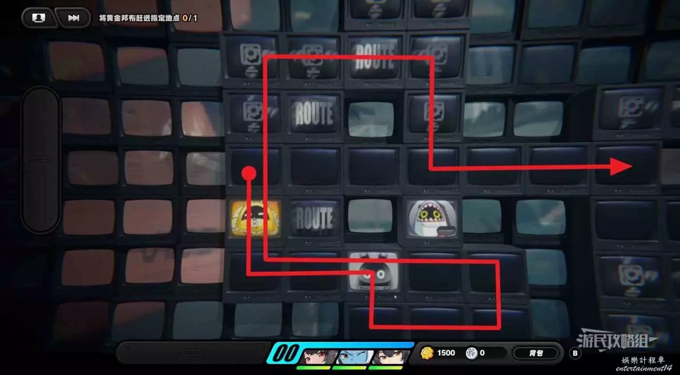 然後需要將黃金邦布驅趕到右側的窄路上去,我們每移動一格,邦布就會移動一格。從左側把它趕過去即可。下圖為參考路線。