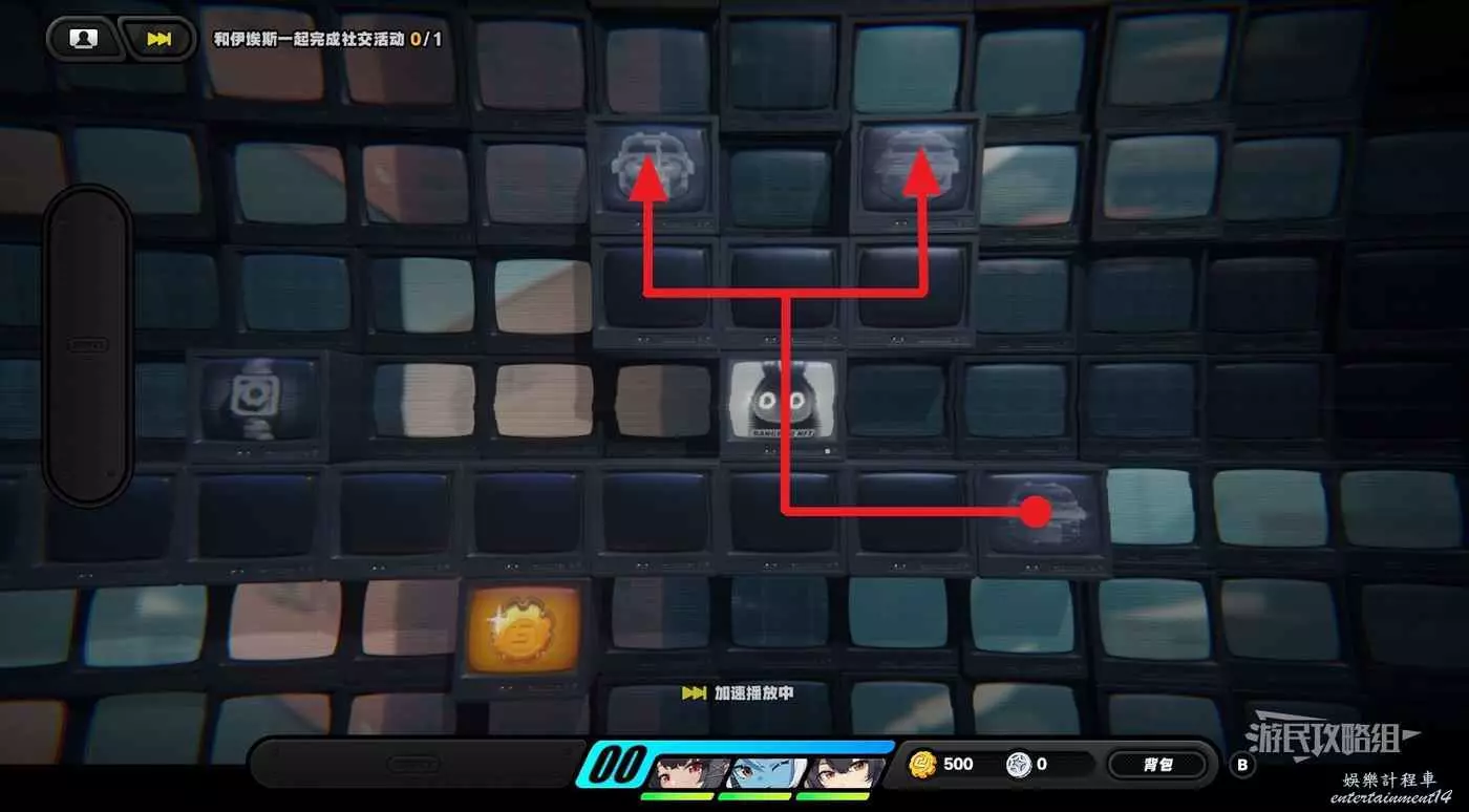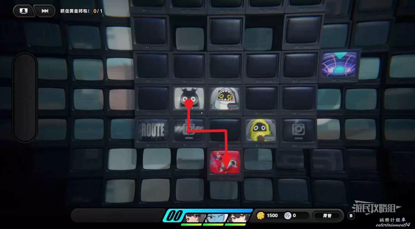 然後在右側區域,將黃金邦布驅趕到下方藍色出口位置,觸發劇情。
