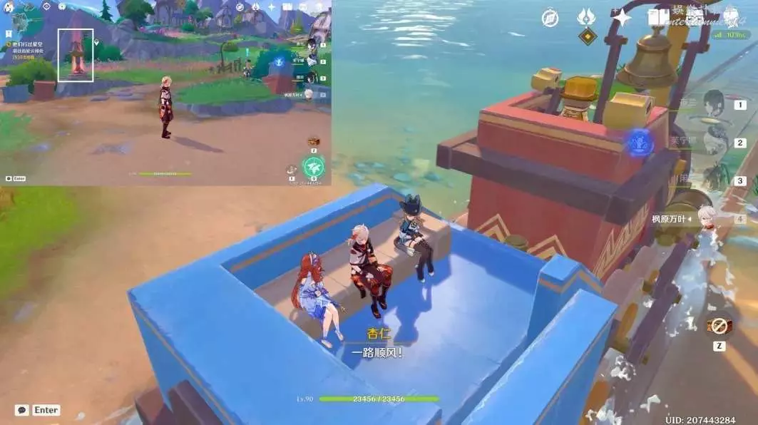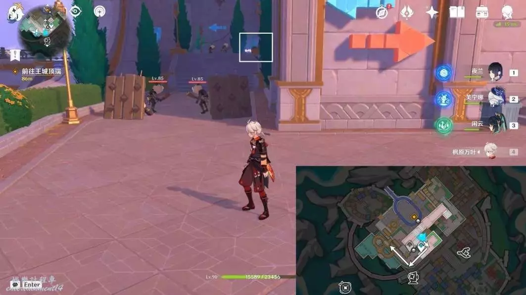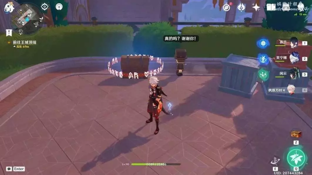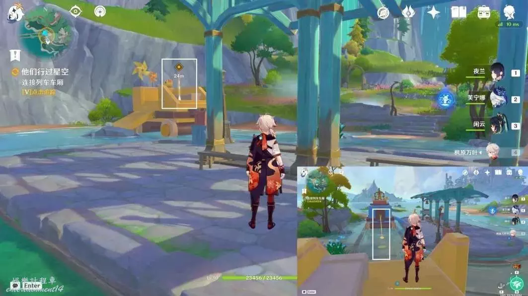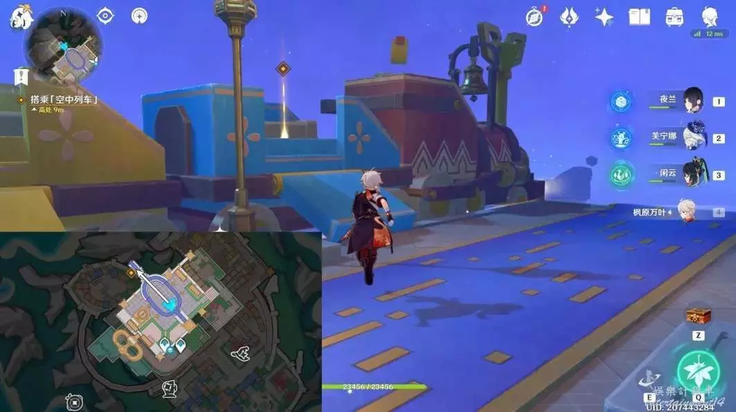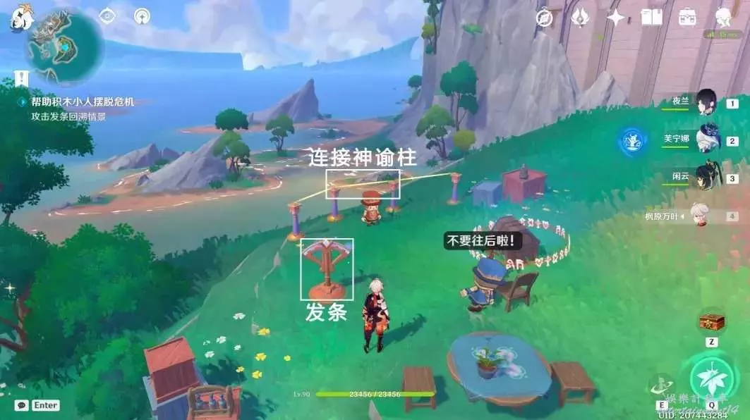 擊敗陽台上的丘丘人,互動木箱後的積木小人“已經安全啦!”,獲得普通的寶箱④