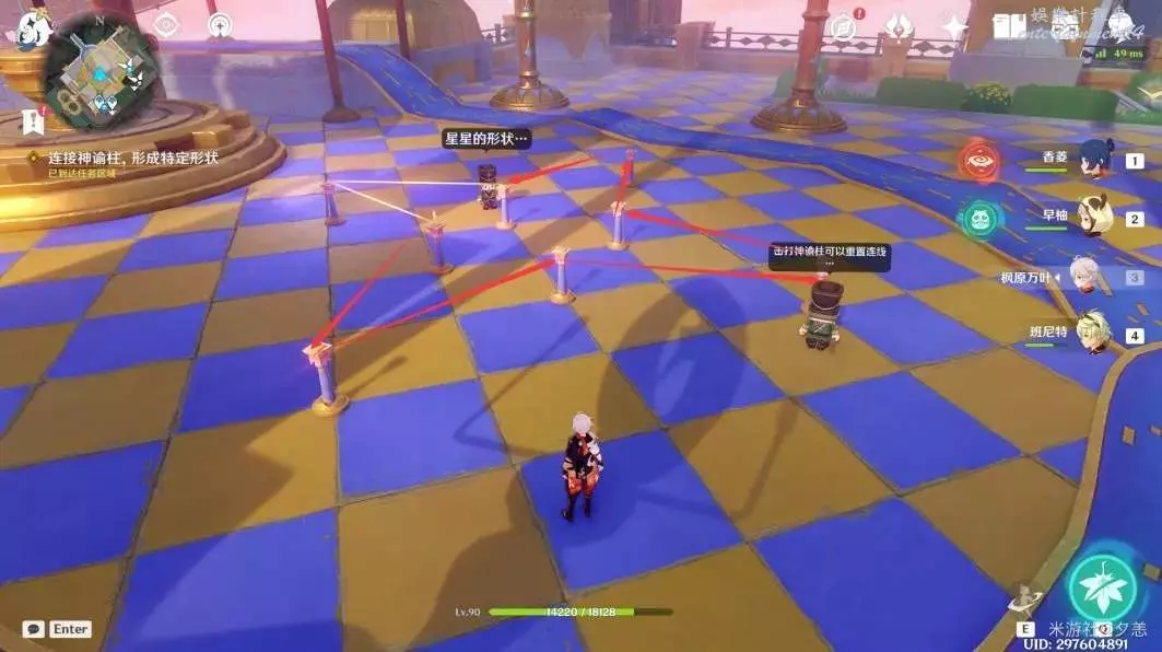 站在神諭柱旁互動出現魔線連接神諭柱,形成一個四角星即可(如果連接錯誤可以通過攻擊神諭柱進行重置),完成拾取第五個散落的星星。