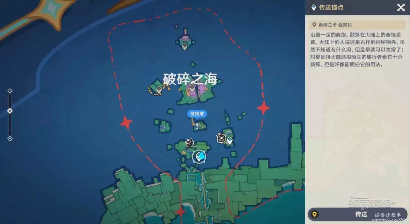 傳送到破碎之海中間的傳送錨點。