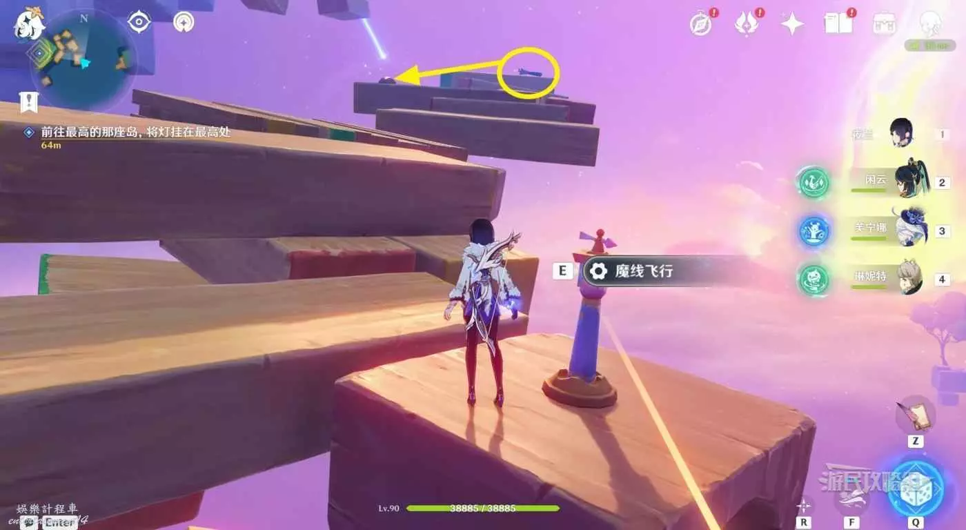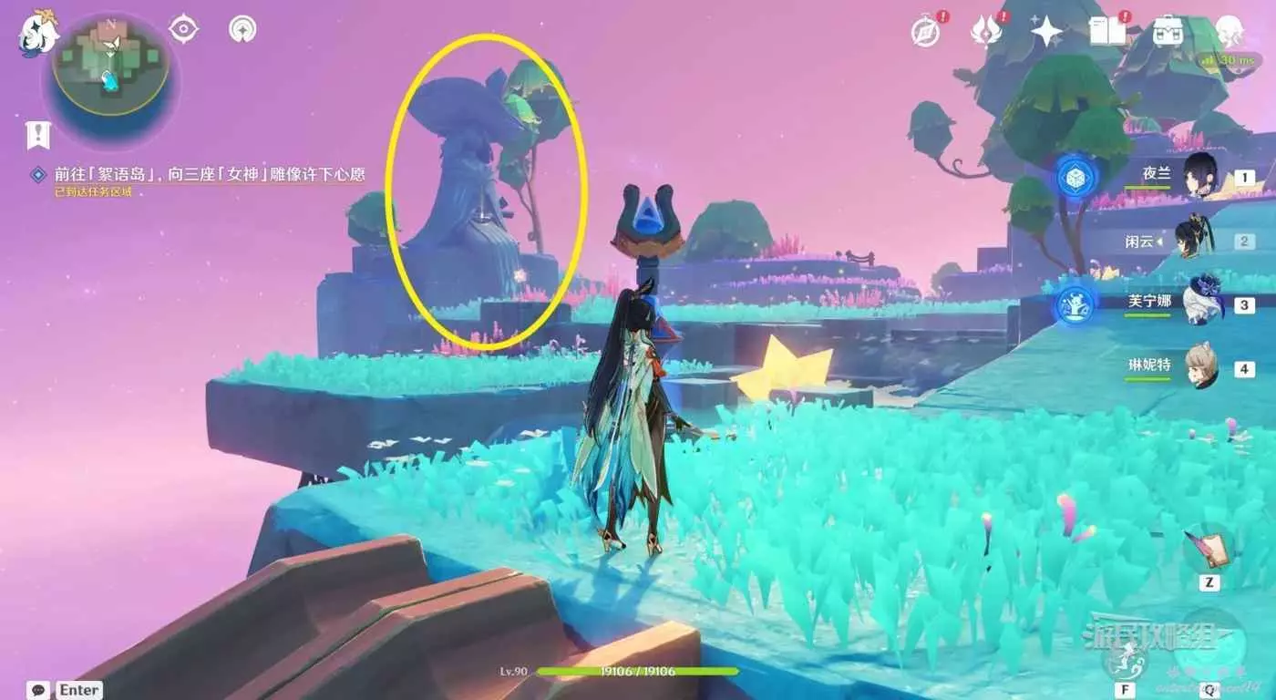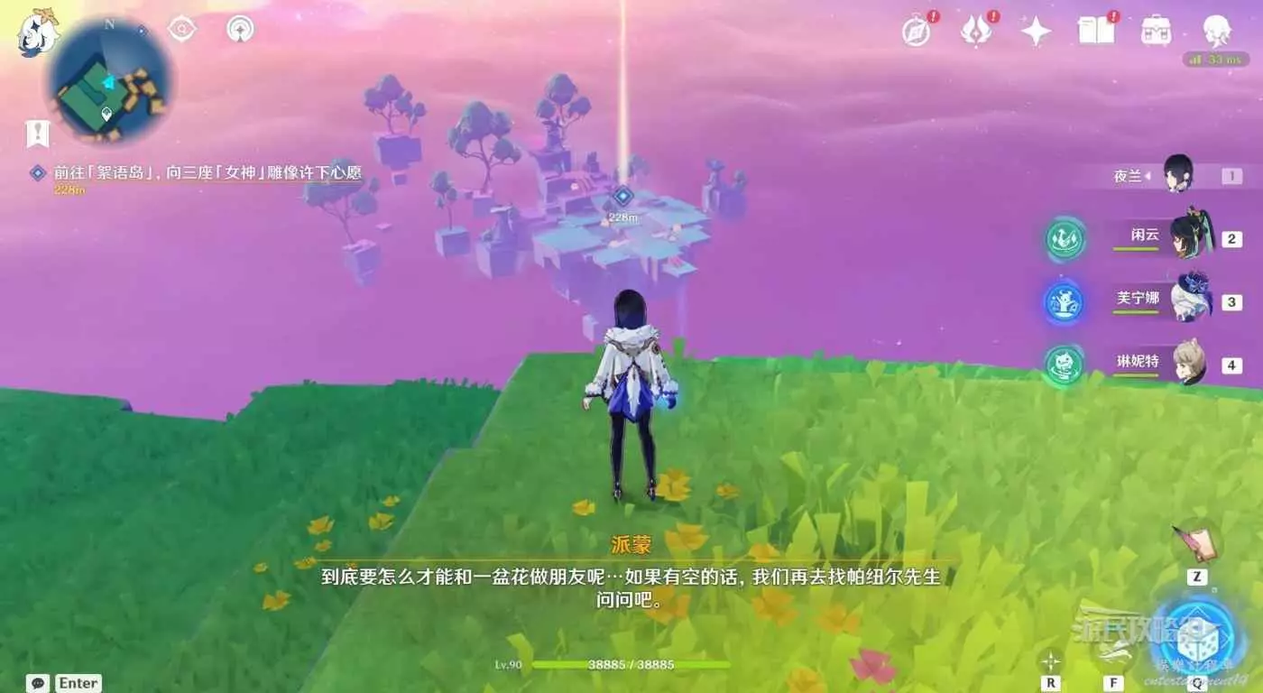 對話結束後,跟隨指引飛向目標地點的絮語島。