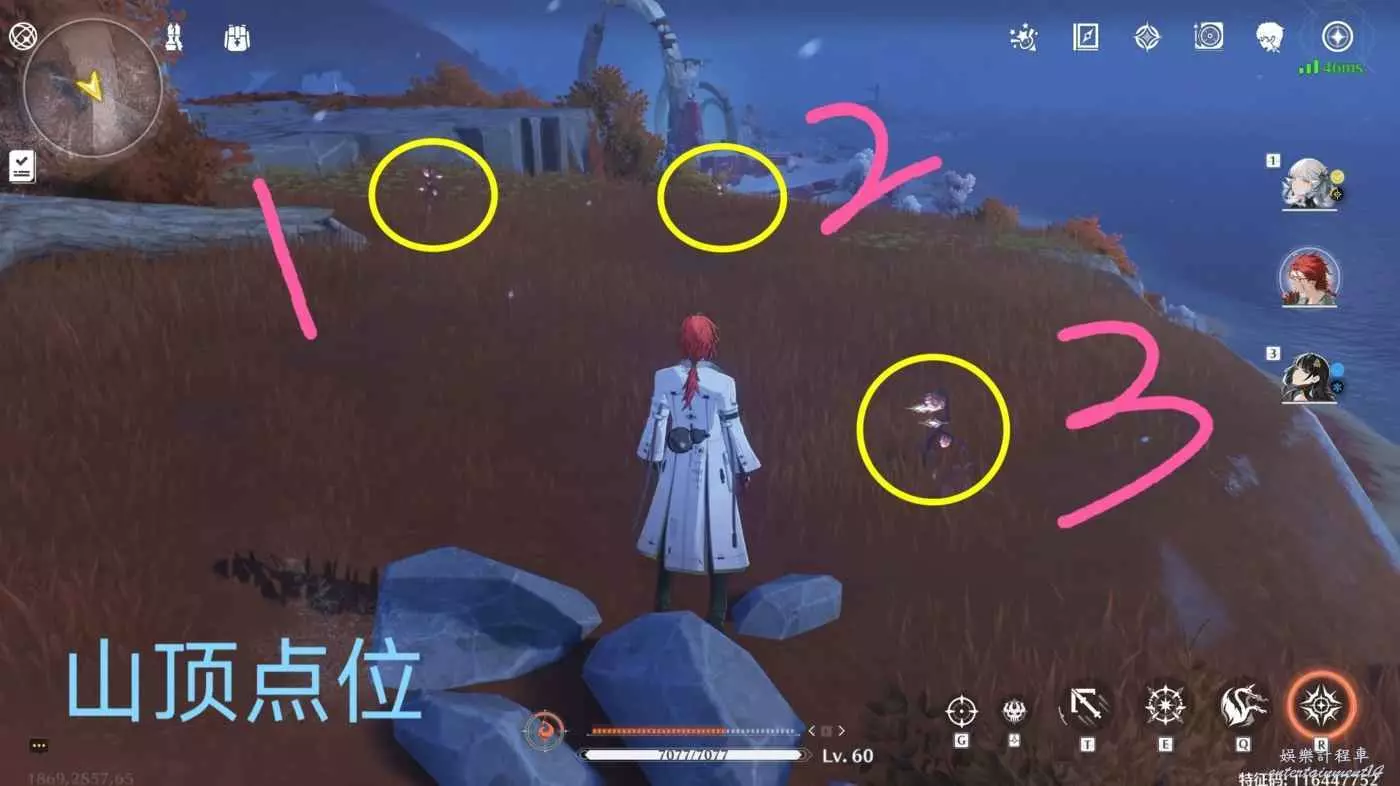 鳴潮 (Wuthering Waves) 雀翎果採集路線分享 22 7 月 2024-07-22 廣告 作者:海上滿月 來源:kurobbs 位置一覽 具體位置 點位1 中樞信標左上方路邊3株 點位2 中樞信標右上方上山頂3株 點位3 山頂摘完右手邊懸崖往下看,半山腰突出平台3株 點位4 半山腰摘完右手邊懸崖往下看,水邊3株 點位5 中樞信標右上方上去沿著海邊一直往右走,海邊有3株