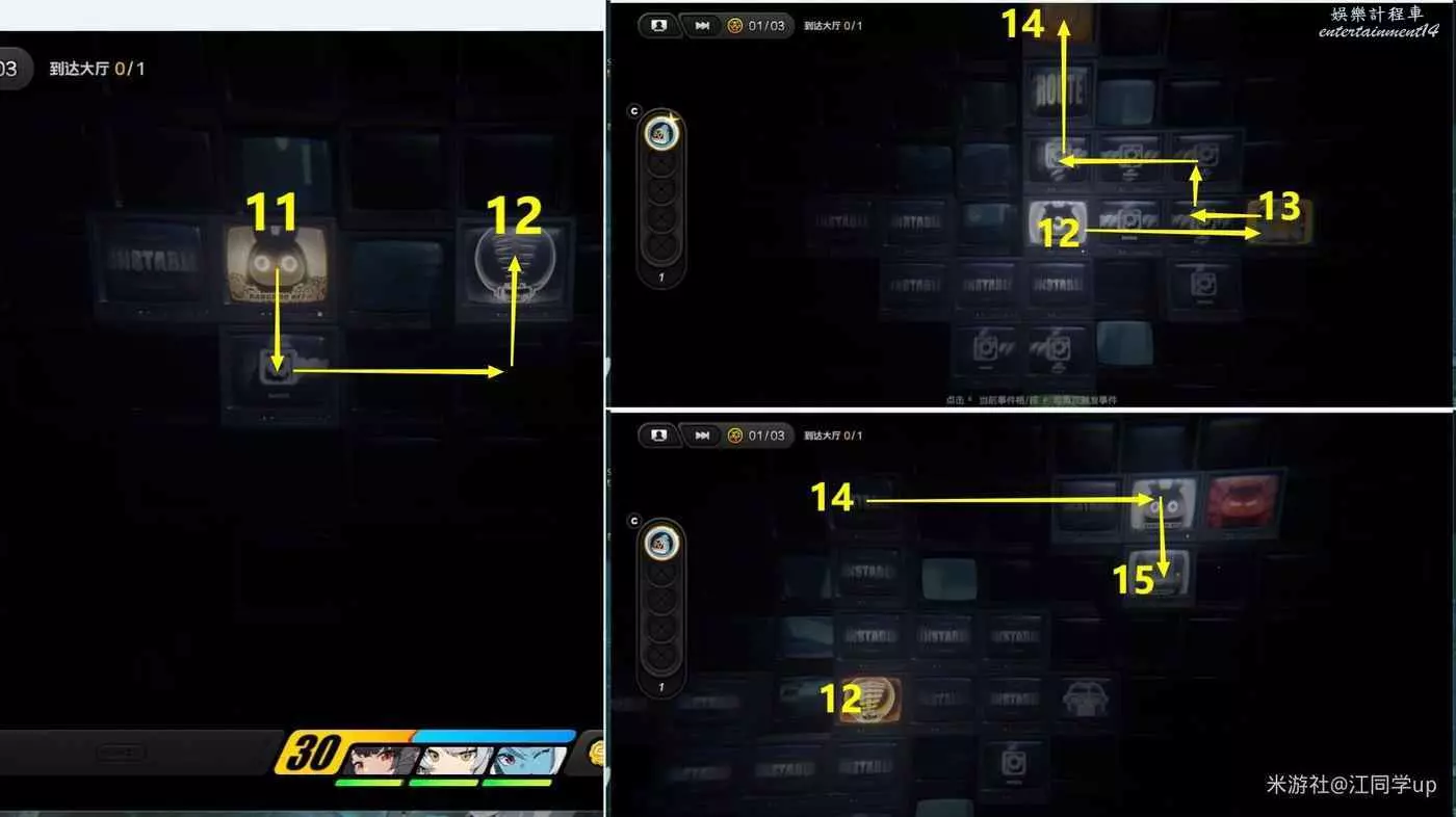 4.接著從11區域去12區域開燈,接著去13區域拿了寶箱後去上面14區域,然後從15區域軌道去16區域