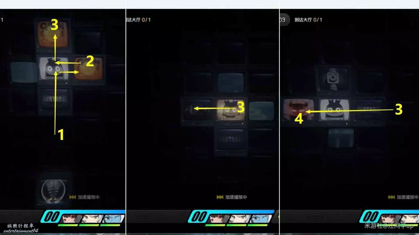 1.最少34級,並且主線任務做到【第3章-危樓夜尋蹤】後,即可自動接到【劇情委託-詭異的來信】,進入副本後,開始階段路是黑的,需要去開燈,先從初始1區域去上面2和3區域,接著從3區域向左邊移動3格到4區域打怪