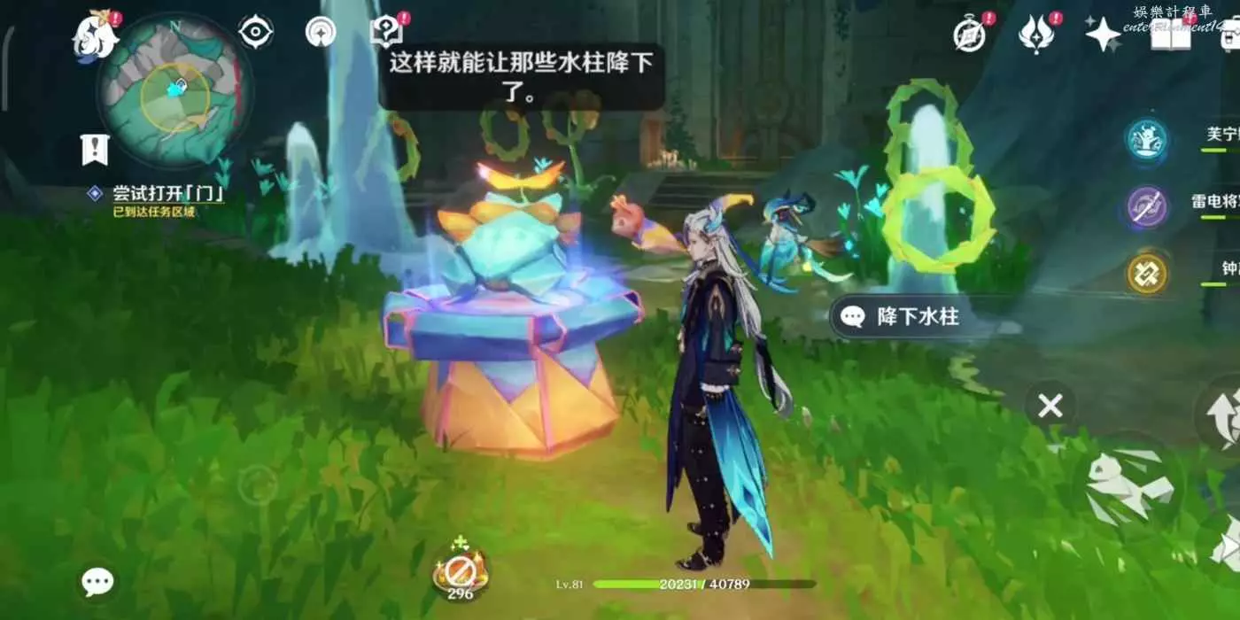 靠近紙蛙,點擊“降下水柱”後,山洞內水柱會降下。