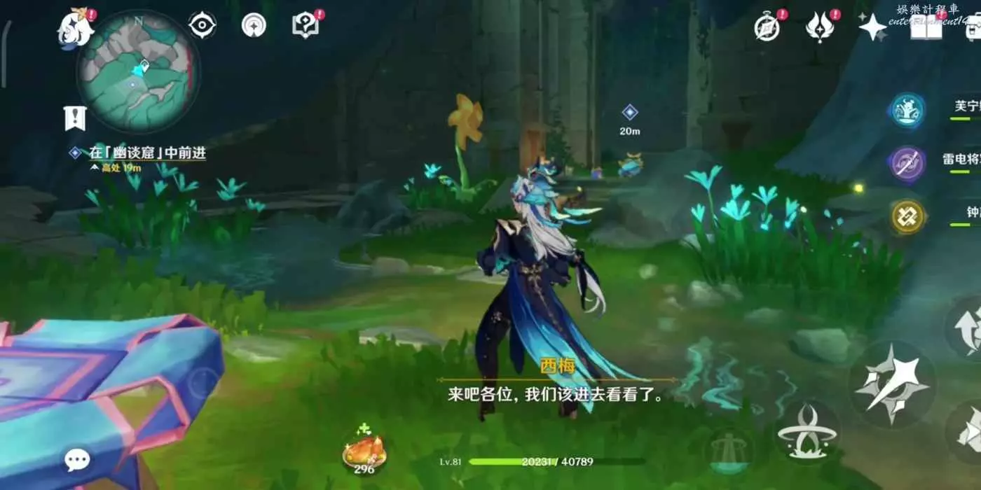 跟隨任務指引,前往賜福森林東北方向山洞內,到達後自動進入劇情對話。