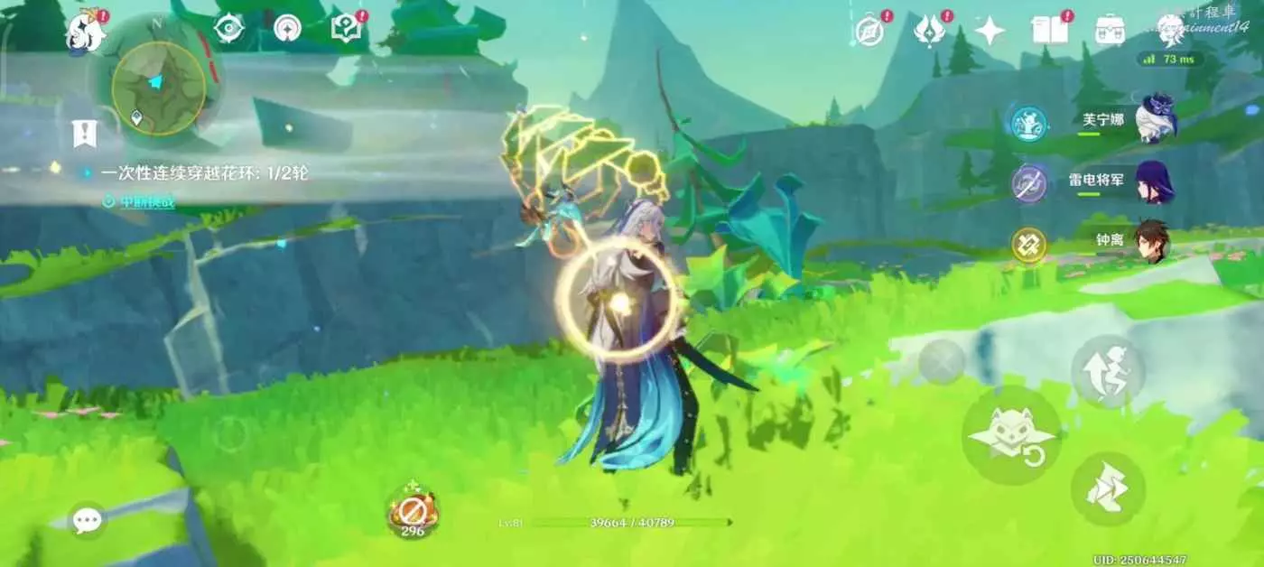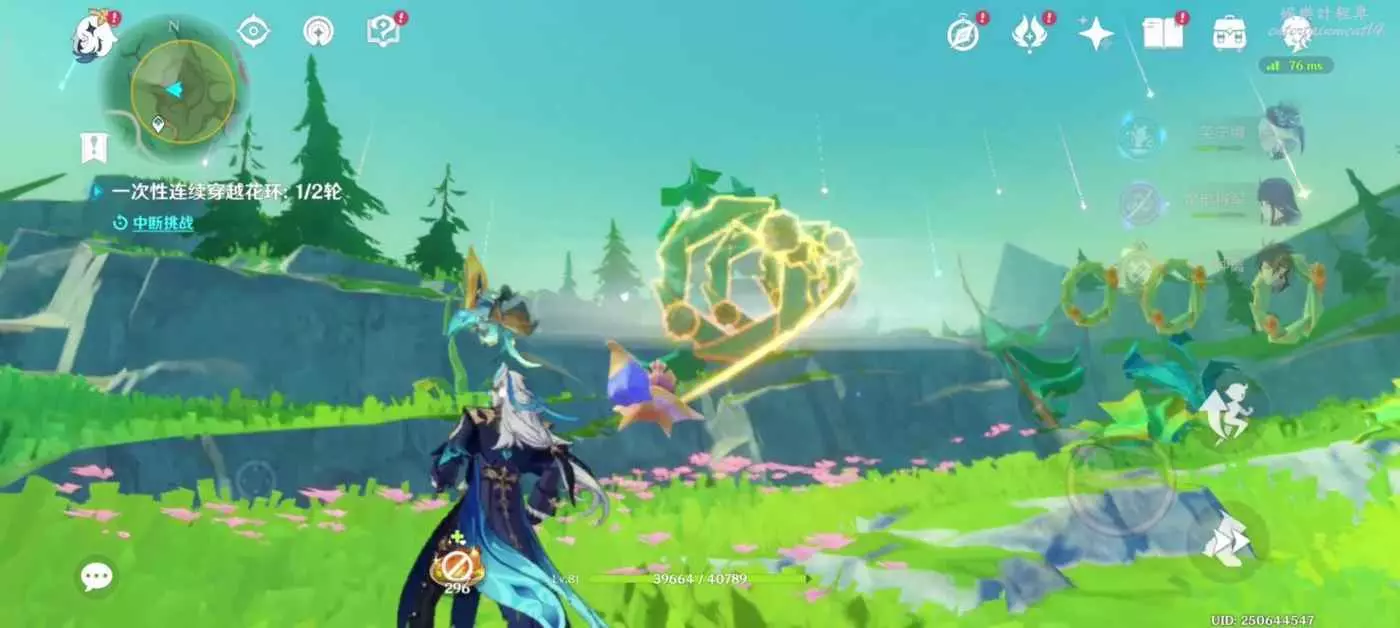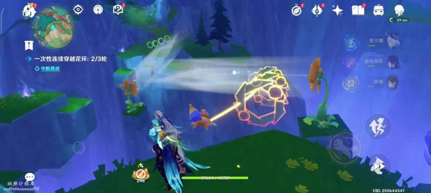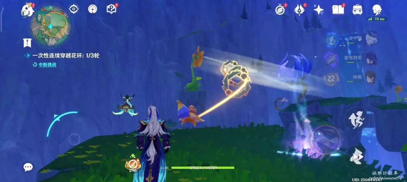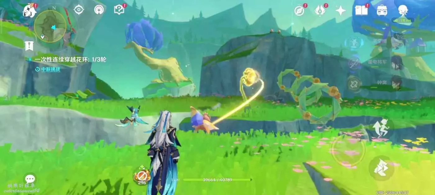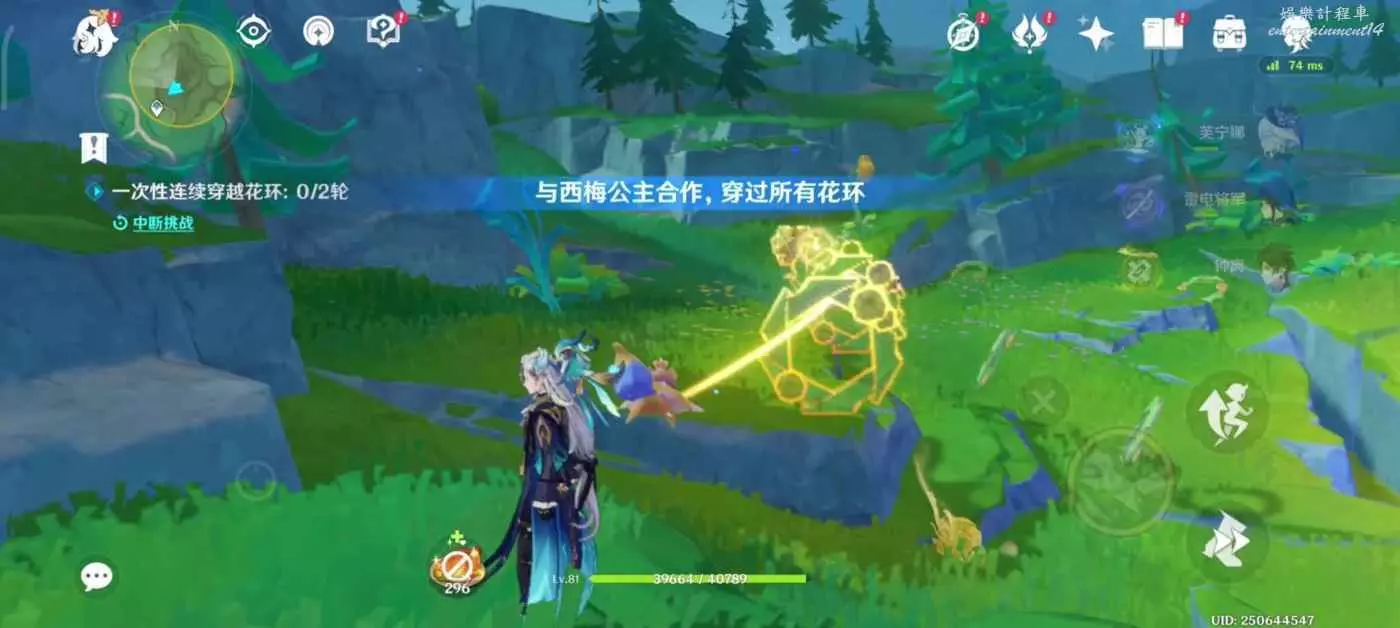 BUFF等待花環排列成一條直線後,控制西梅公主穿越所有花環。