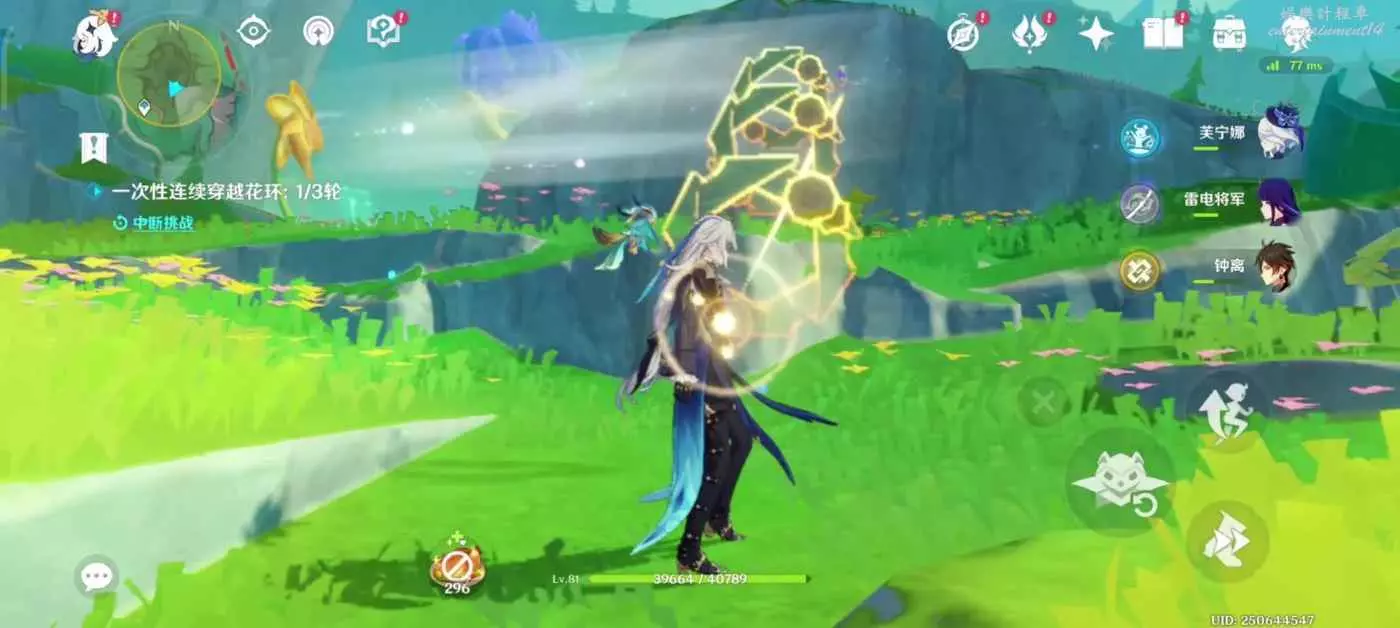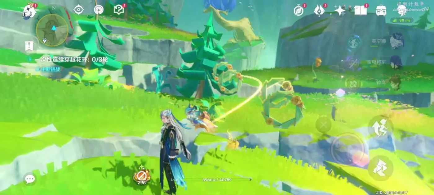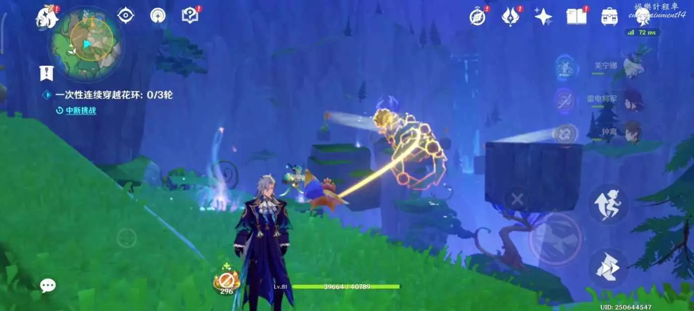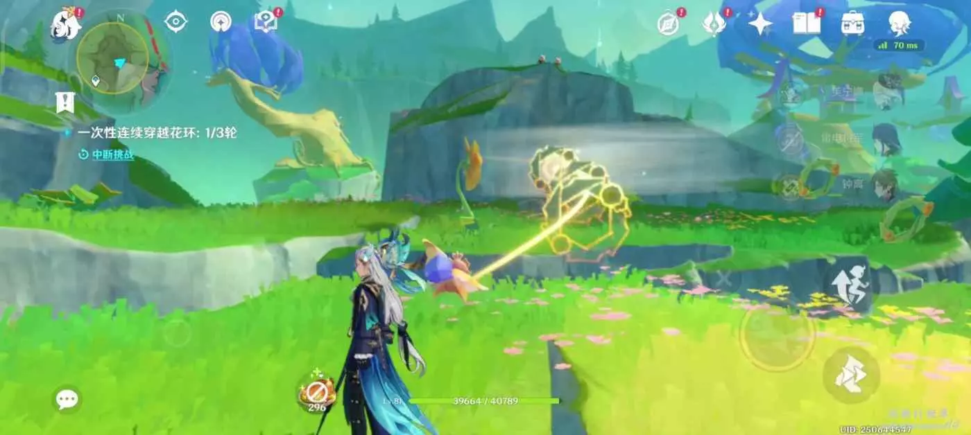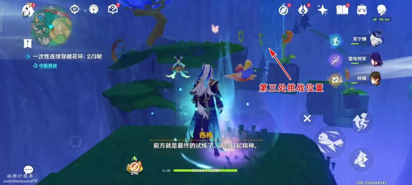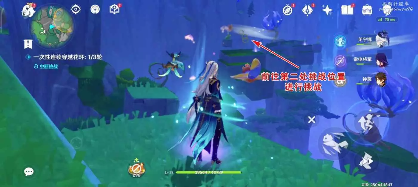BUFF前往第二輪挑戰位置。啟動下圖所示的“氣氣花”,形成風場。