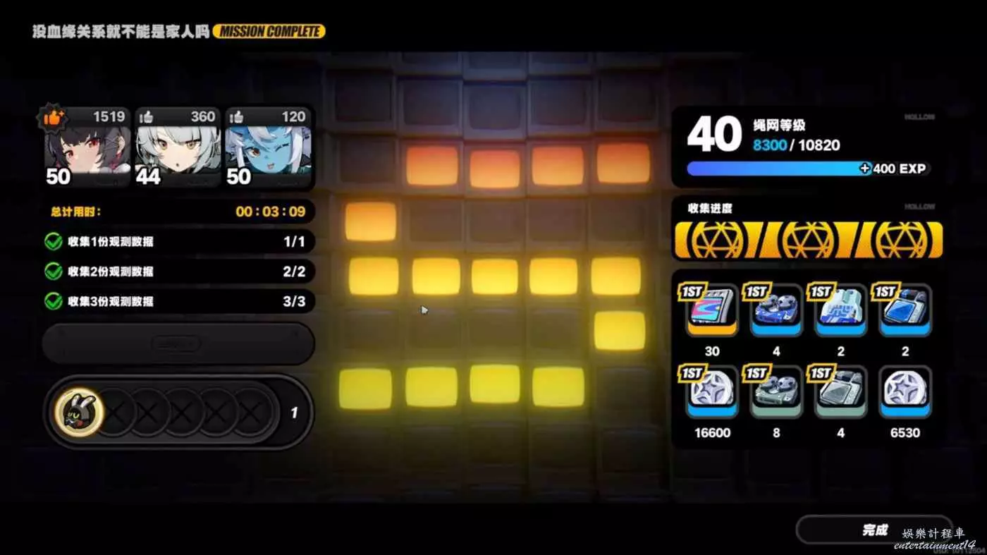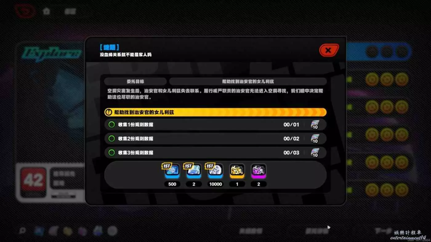 繩網信用*500、邦布演算法模組*2、丁尼*100000、精英調查員物資箱*1、資深調查員物資箱*2