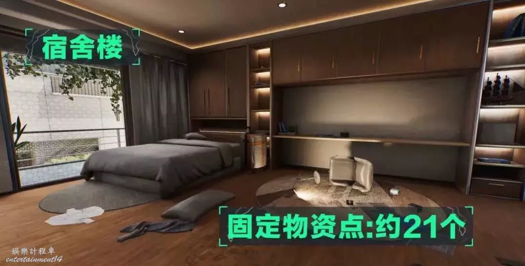 上半部分週邊區域最後一處,是西北邊的宿舍區,這裡的物資少一些,在南邊的停車場、中庭和3間兩層宿舍樓內,有約21個固定物資點,但不要忘記檢查宿舍的桌面和置物架,往往會給你帶來意外的驚喜。