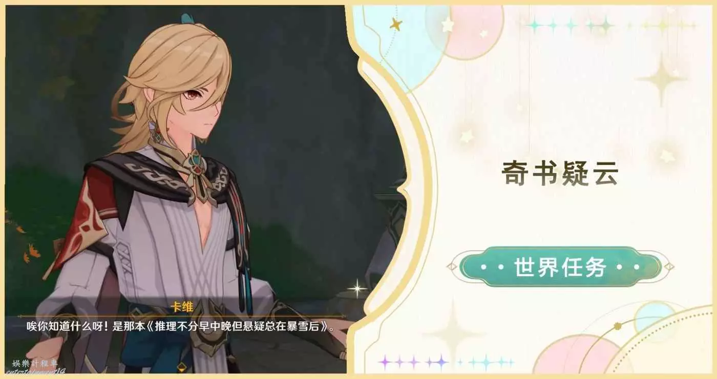 介紹世界任務「奇書疑雲」的任務內容,劇情內容簡單,全部都是對話;