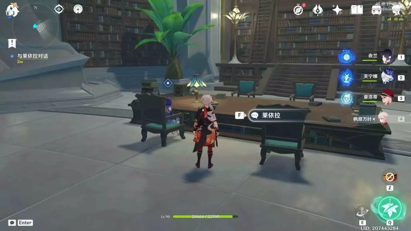 前往教令院內水池邊,與琺露珊對話1分鐘