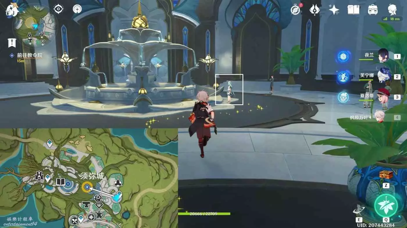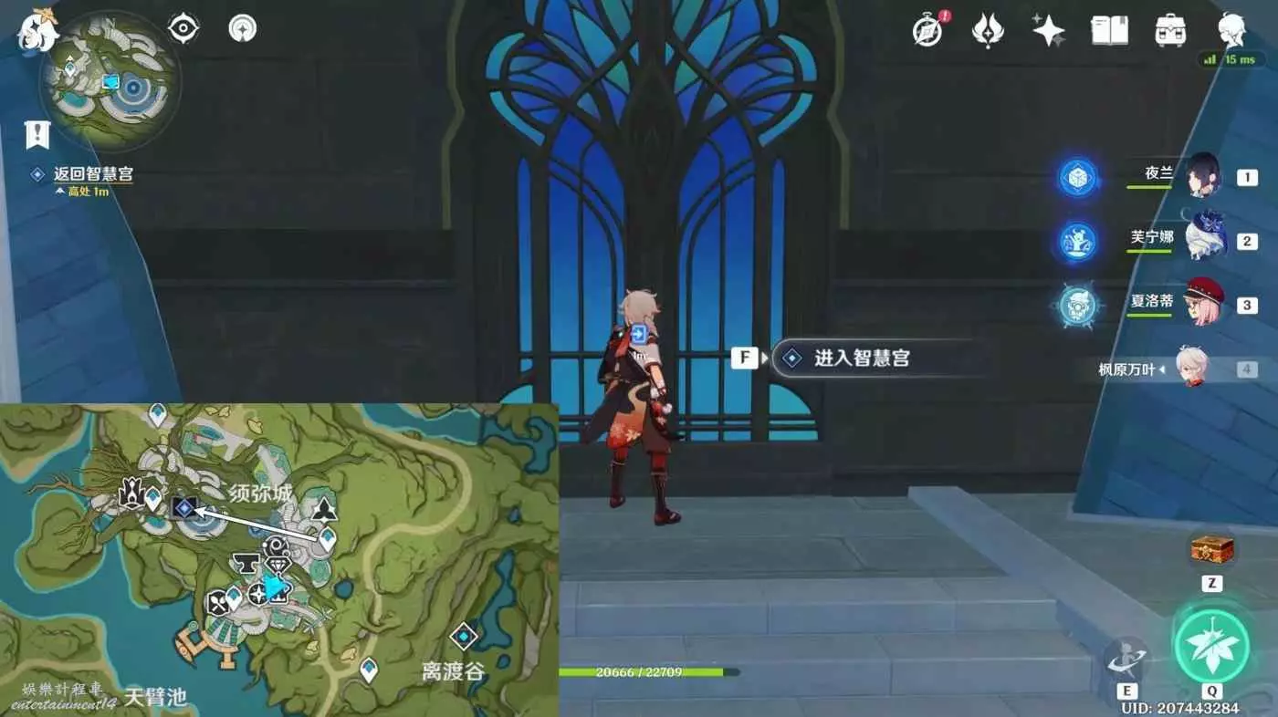 前往須彌城錨點,前往智慧宮,與納西妲等對話1分鐘