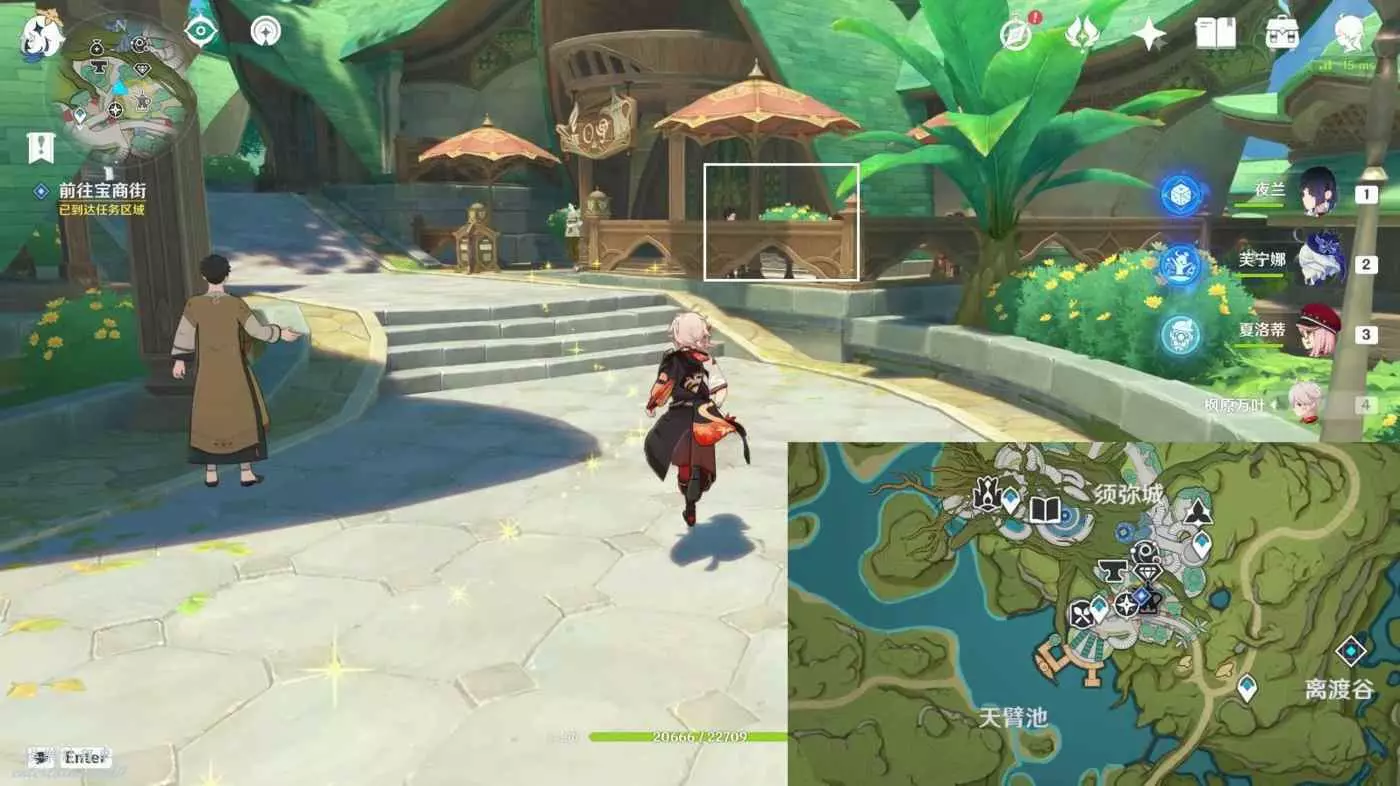 傳送化城郭神像,前往化城郭木平台上,與提納裡對話1分鐘