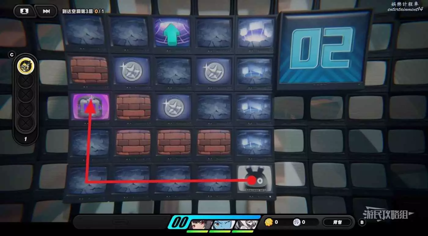 到達第三層後,按照下圖所示路線拾取丁尼,然後進入左上角的裂隙,回到第二層。