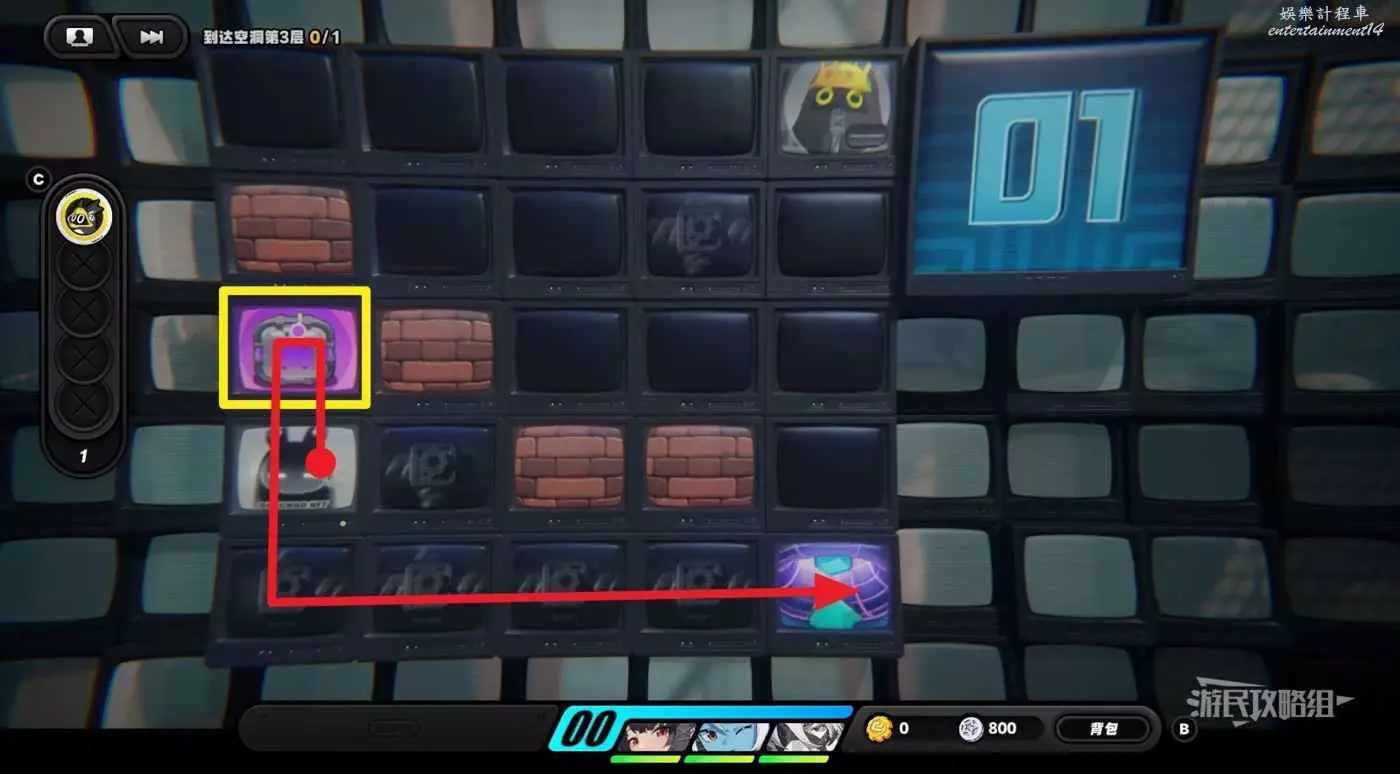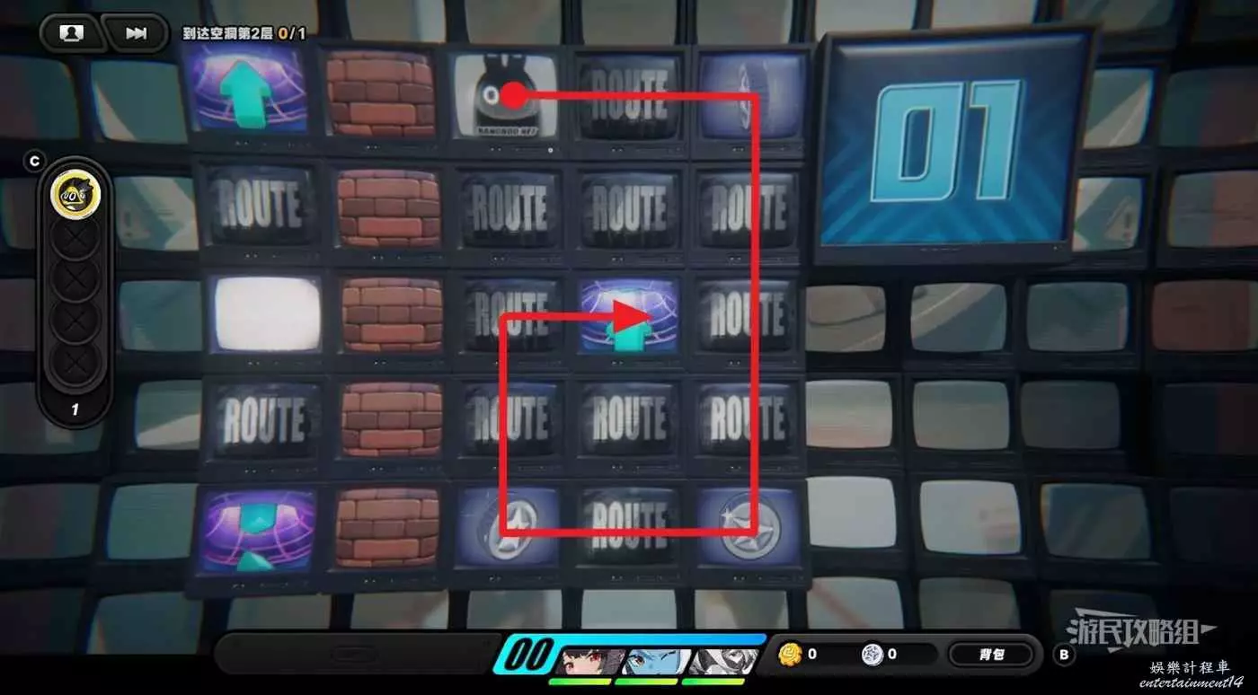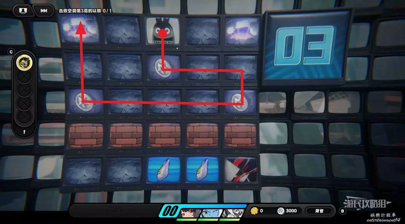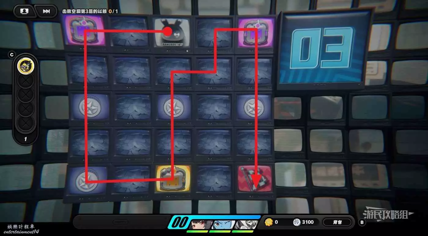 進入第三層,按照下圖路線拾取本層所有物資和丁尼,然後進入出口,觸發戰鬥。