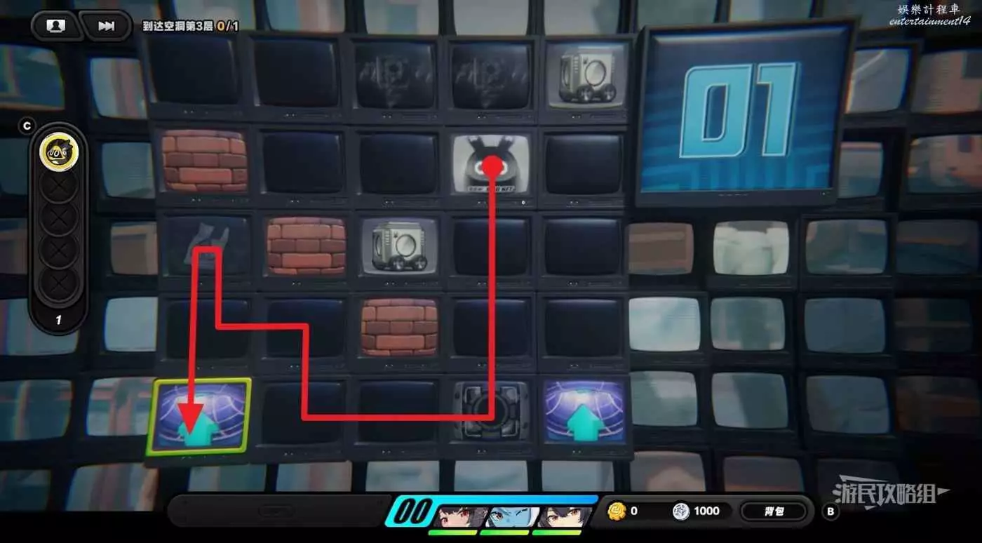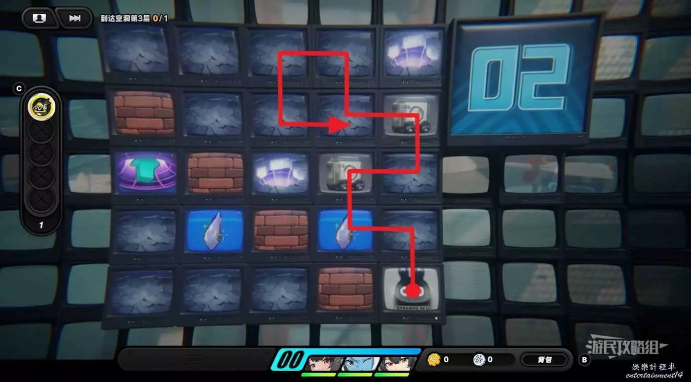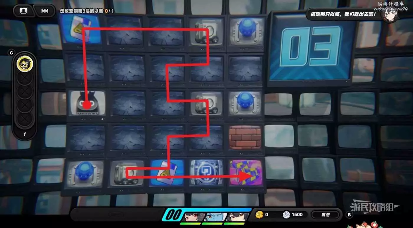 到達第三層後,先往左走到頭拾取紫色物資,然後往下走把箱子推到左下角,往右走一格,往上走兩格,再往右把箱子推到機關上開啟機關門,往下走拾取黃色物資後進入傳送門。戰鬥結束後,任務完成。