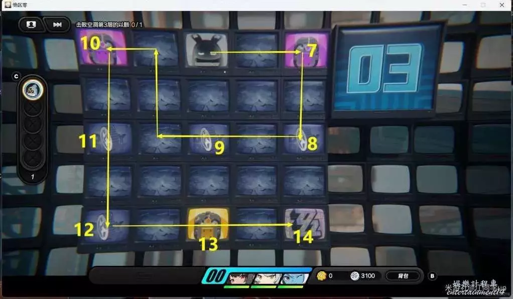 (3)到03層後,按照下圖路線依次去7-13區域拿獎勵,最後去14打完怪後,該副本結束