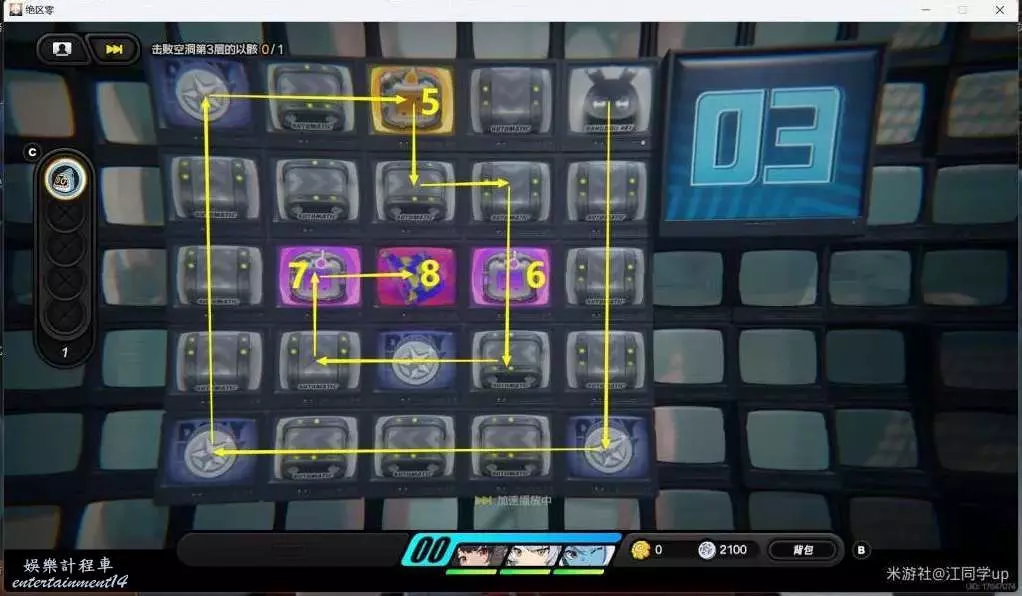 (3)到03層後,按照下圖路線拿了6-7區域寶箱後,最後去8區域打完怪後,副本結束