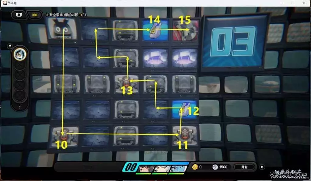 (3)到03層後,按照下圖路線依次去10-14區域,最後去15區域打完怪後,副本結束