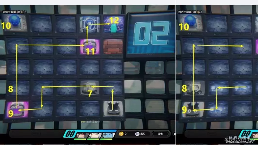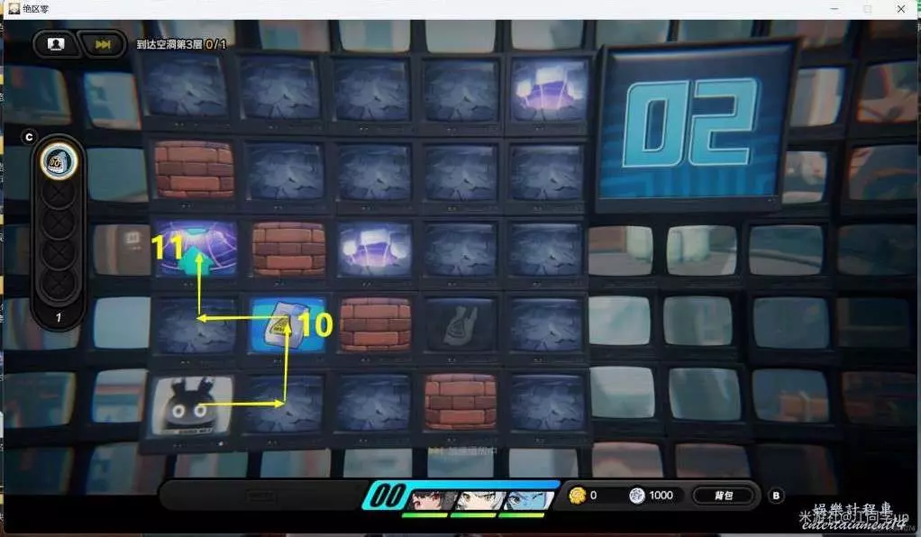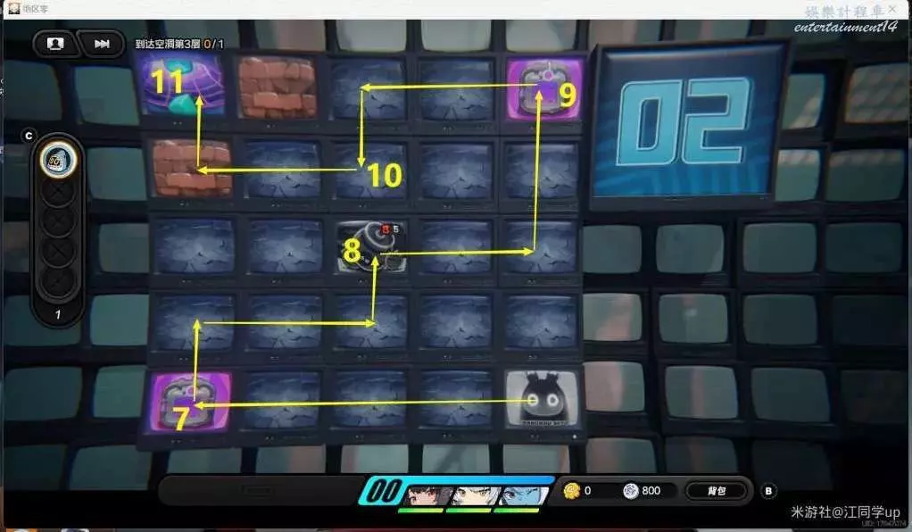(2)到02層後,按照下圖路線走,將8區域炸彈推到10區域即可,最後去11區域傳輸到03層