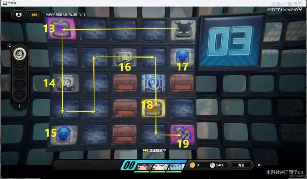 (3)到03層後,先去13區域拿寶箱,接著將14區域的小車推到15區域,然後再去將16區域的小車推到17區域,接著再去18區域拿寶箱,最後去19區域打完怪後,副本結束