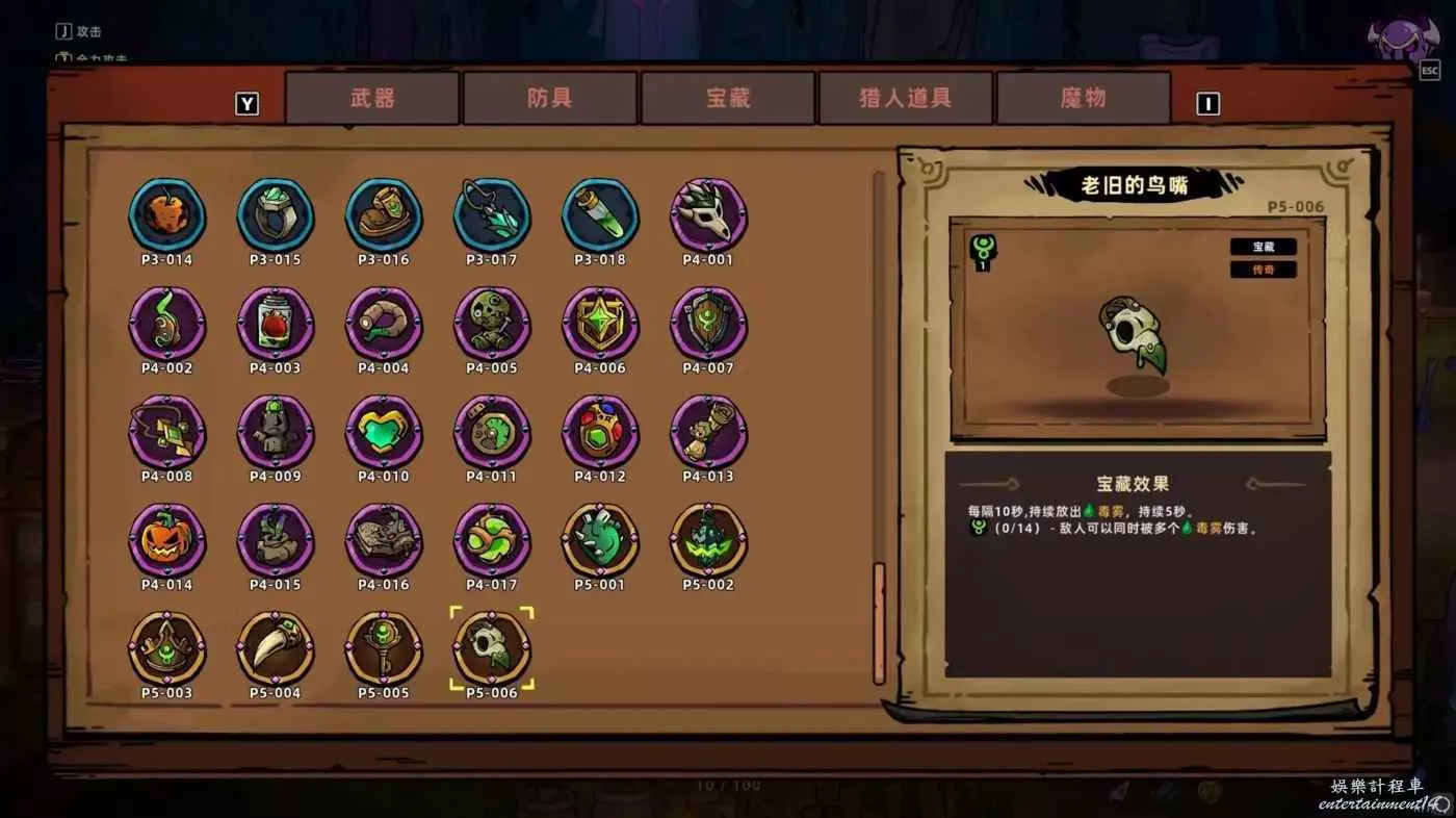 疊毒流的六大核心寶藏:老舊的鳥嘴,惡語南瓜,帕拉提之匙,穿刺之種,伊夫利亞的激流提燈,鼠之尾