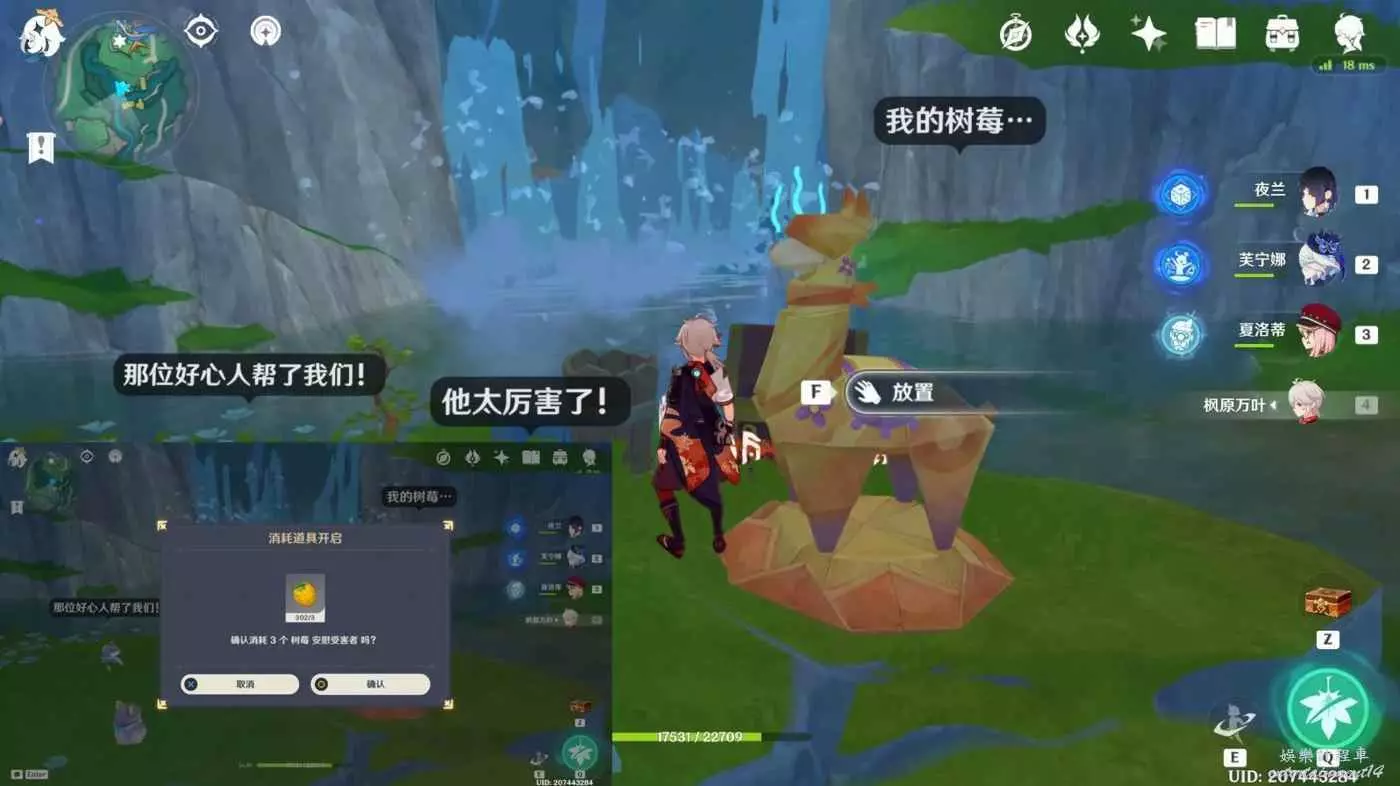 擊敗山洞內丘丘人,拾取樹莓,獲得普通的寶箱