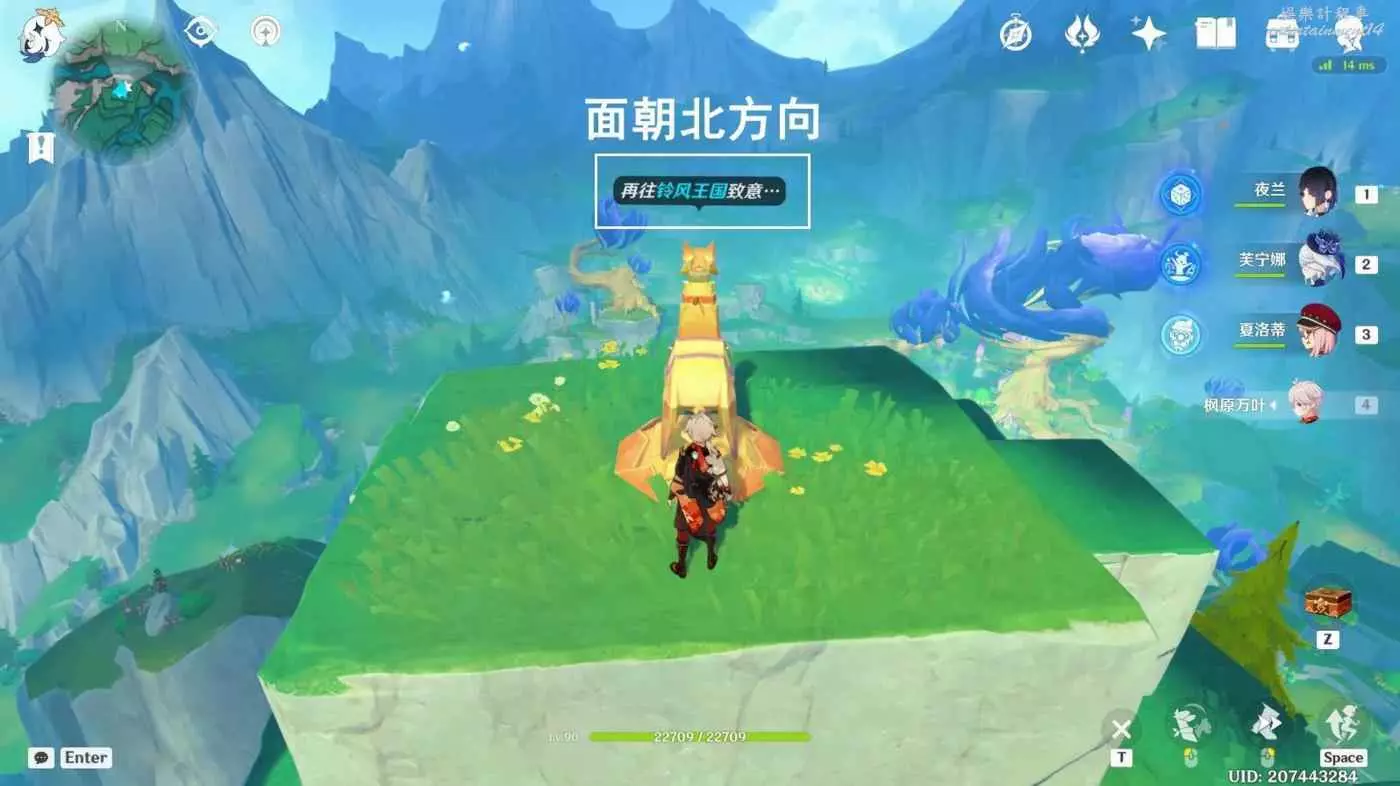 提示“鈴風王國”時,操作馱獸,面朝地圖的北方向點頭