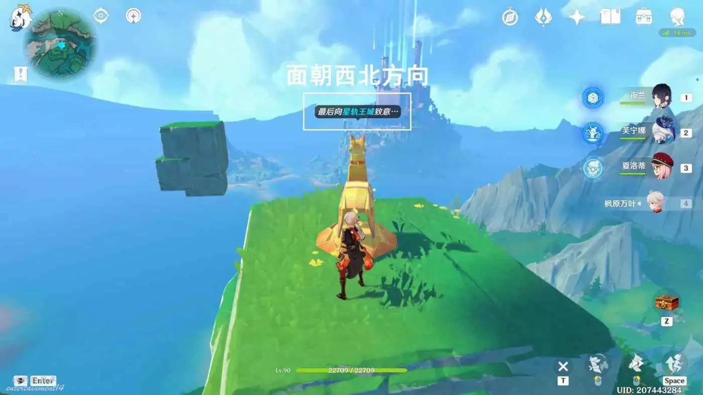 提示“星軌王城”時,操作馱獸,面朝地圖的西北方向點頭