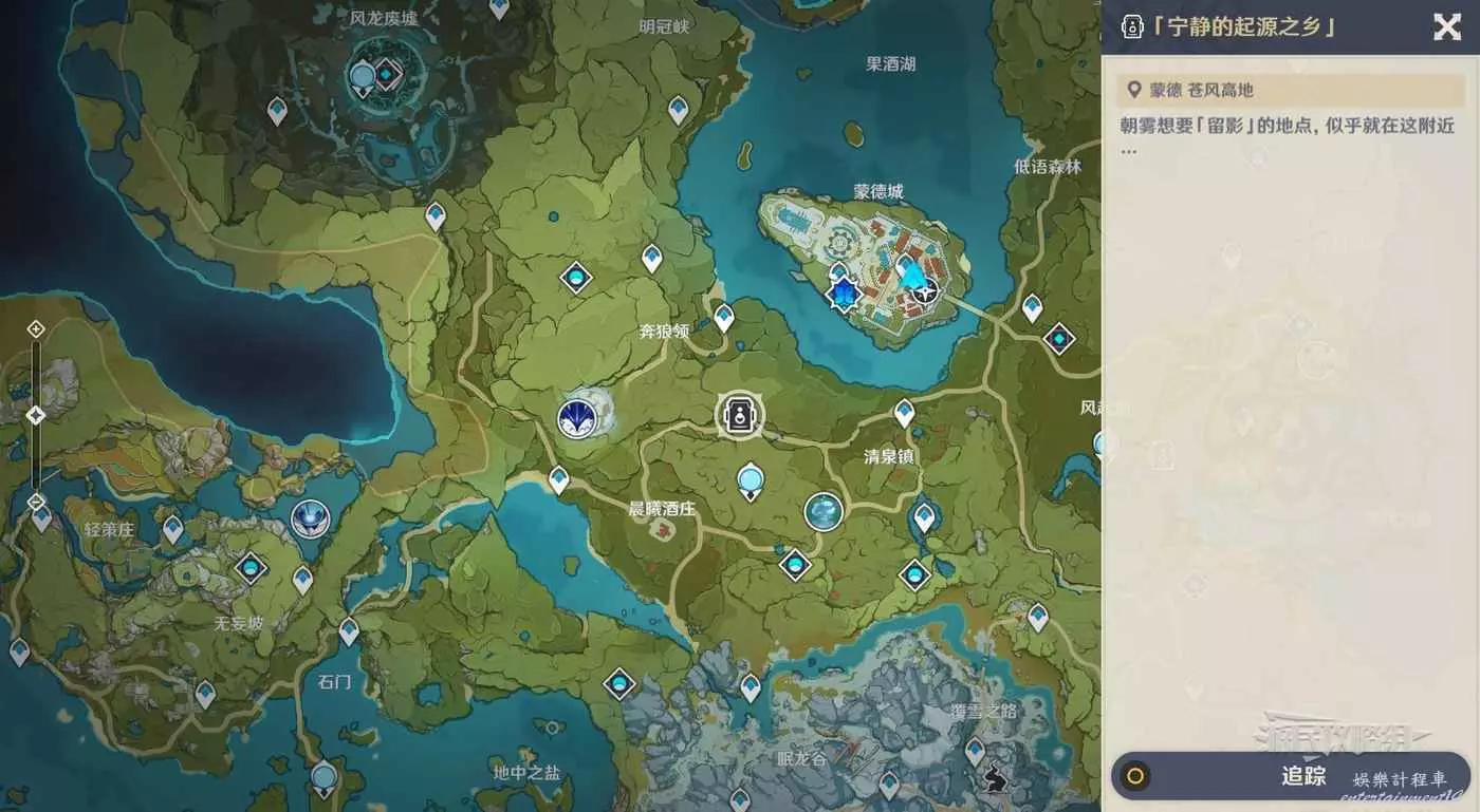 第三關的位置在蒙德蒼風高地,歘送到晨曦酒莊七天神像,然後前往拍照地點。建議先清掉旁邊的丘丘人。