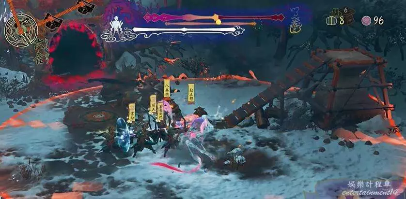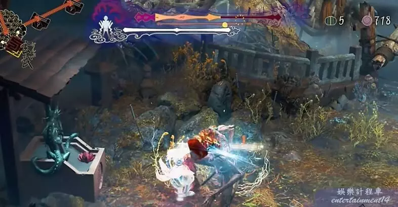 在遊戲構造的環境裡,玩家需要為了保護山之巫女“世代”舉刀揮舞,以爽快的“劍舞”斬除一切。